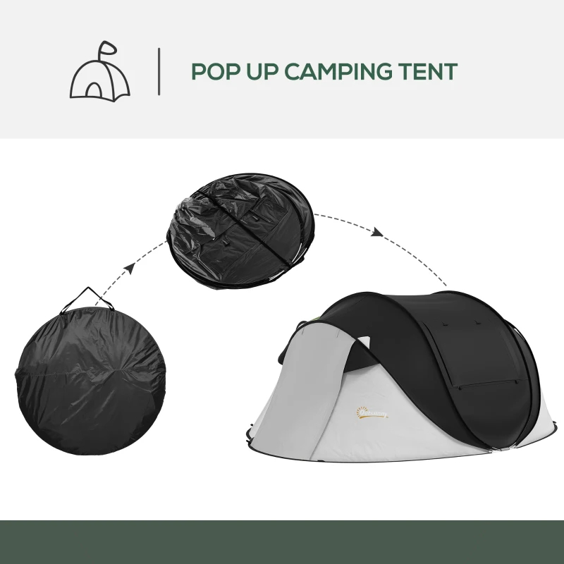 Pop Up Tent With Porch And Carry Bag, 3000mm Waterproof, For 2-3 People Camping Hiking, Black