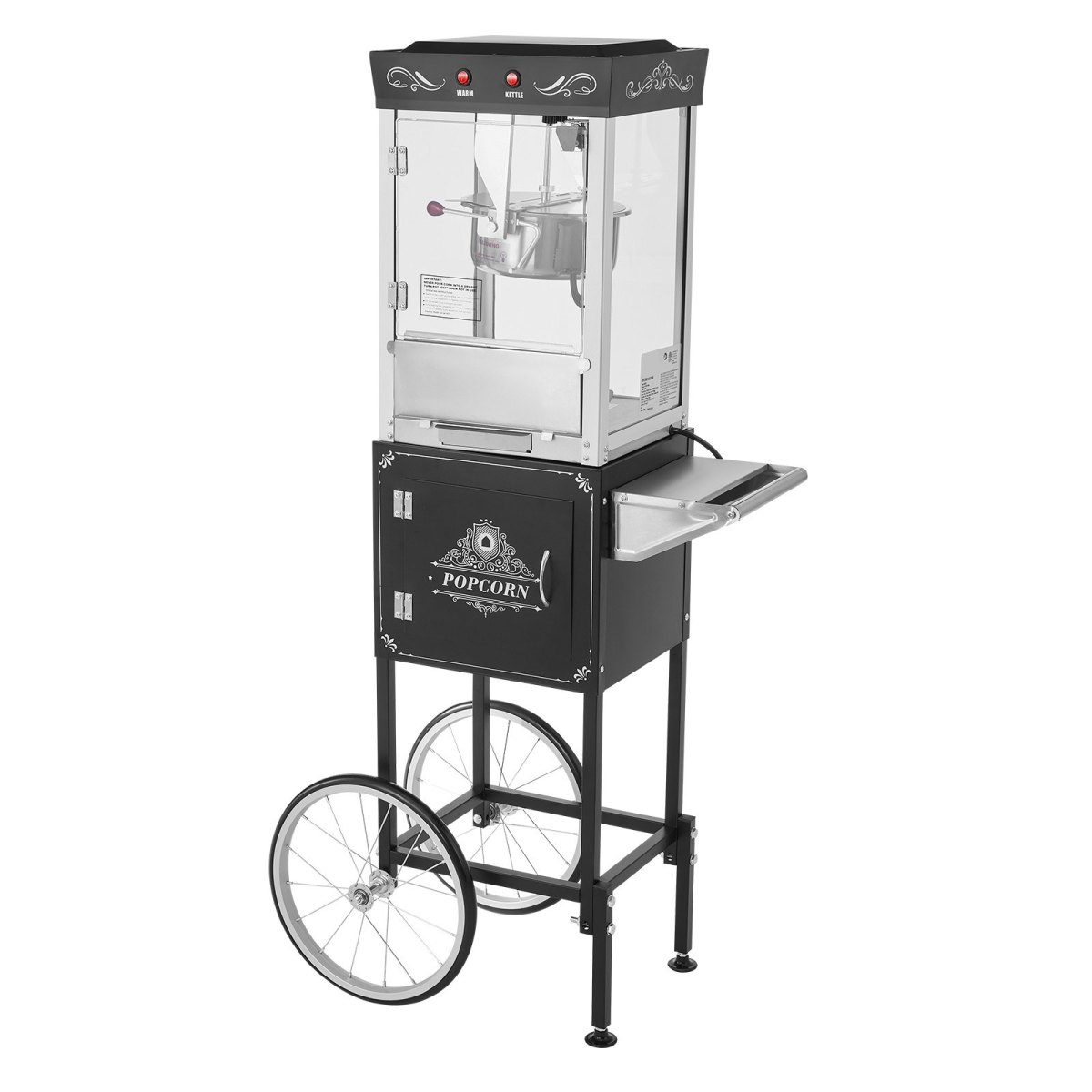 Retro 8 Oz Popcorn Machine: This popcorn machine cart features an 8 oz kettle which can pop up to 48 cups of popcorn per batch, feeding 6-8 people. Get ready to keep sports fans and party guests content with plenty of popcorn to go around
