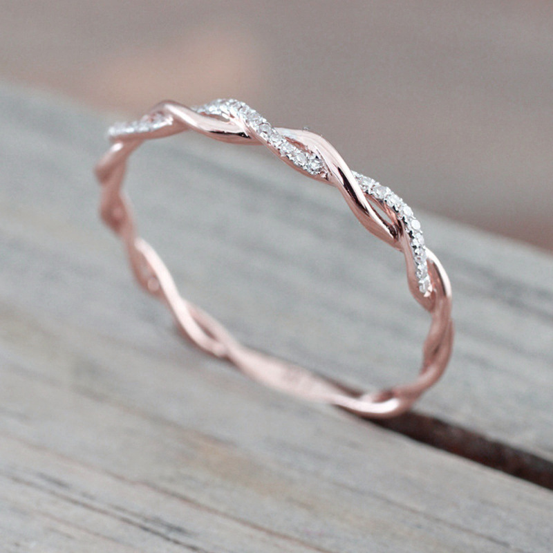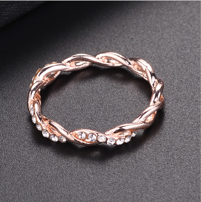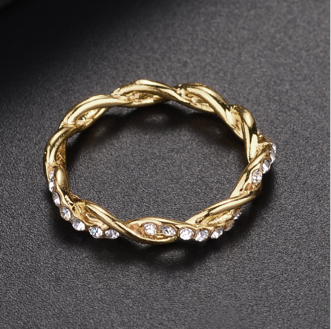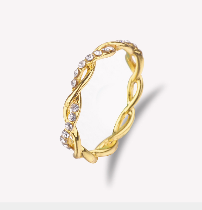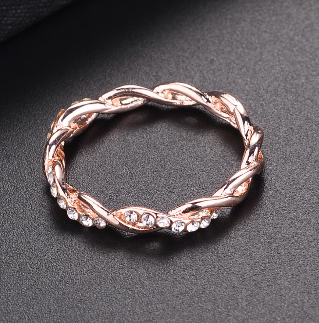 Popular diamond-studded cross twist ring