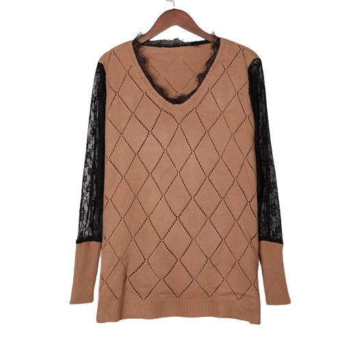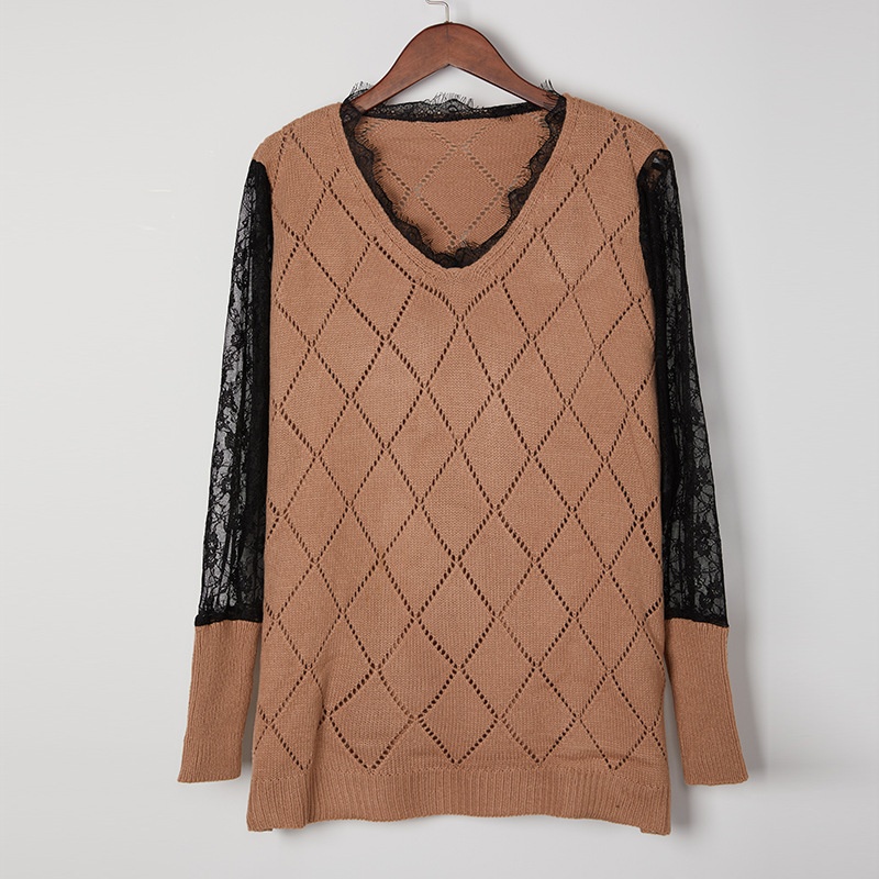 Popular Knitted Lace Bottoming Top V-neck Sweater For Women