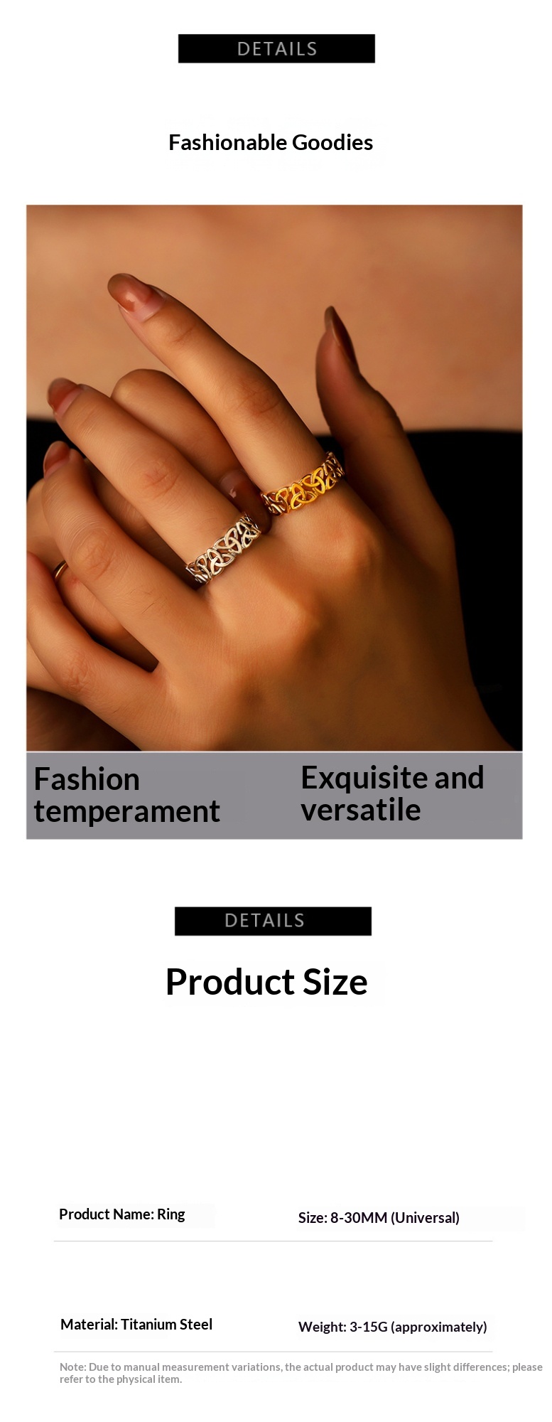 Product information:Type: Adjustable Colors: J1097-A [Gold], J1097-B [Steel] Style: Adjustable Material: Stainless Steel