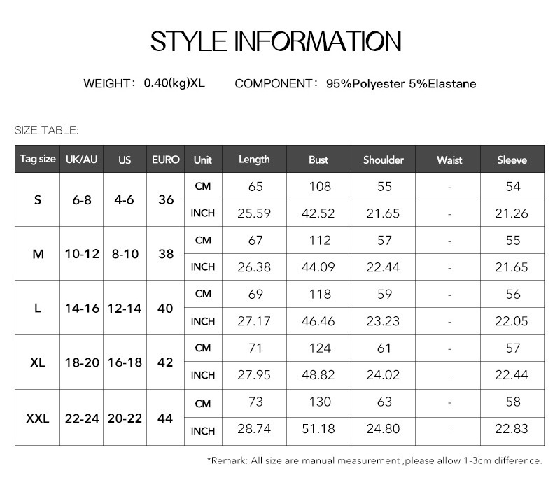 1. Asian sizes are 1 to 2 sizes smaller than European and American people. Choose the larger size if your size between two sizes. Please allow 2-3cm differences due to manual measurement. 2. Please check the size chart carefully before you buy the item, if you don't know how to choose size, please contact our customer service. 3.As you know, the different computers display colors differently, the color of the actual item may vary slightly from the following images.