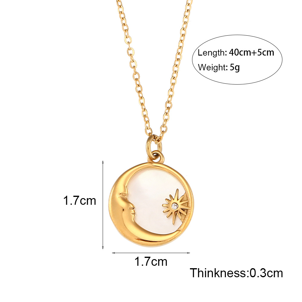 Color: natural shell moon and star pendant necklace-Gold