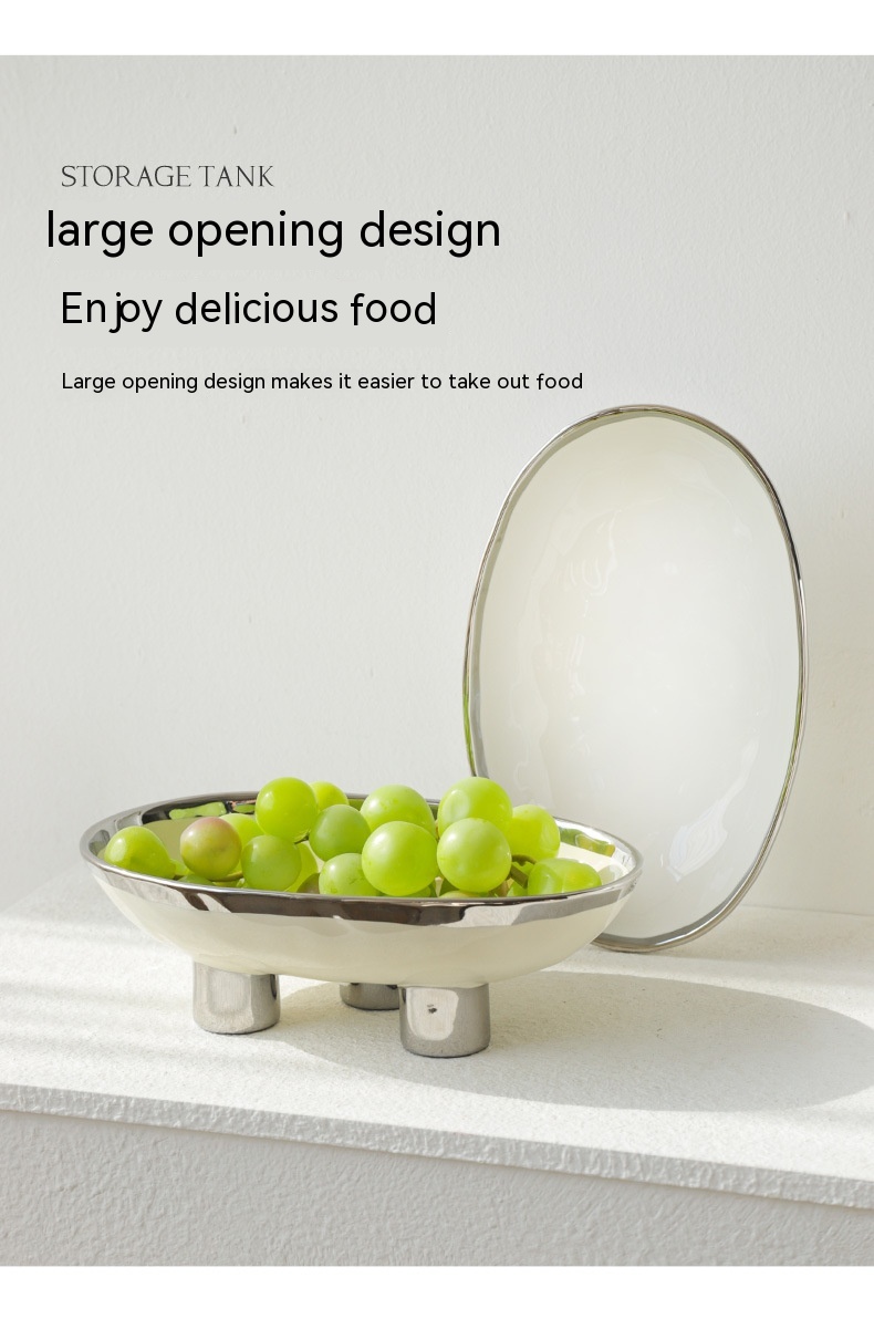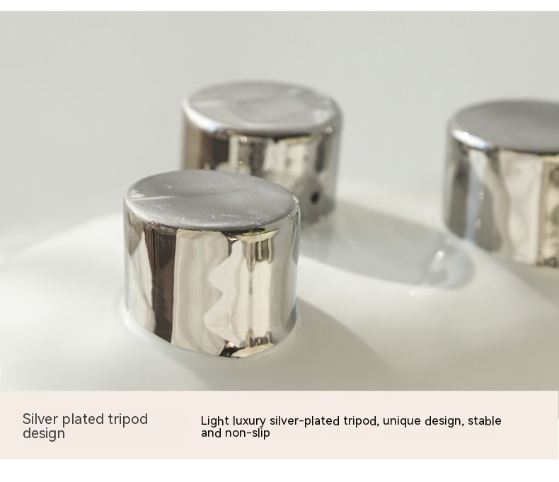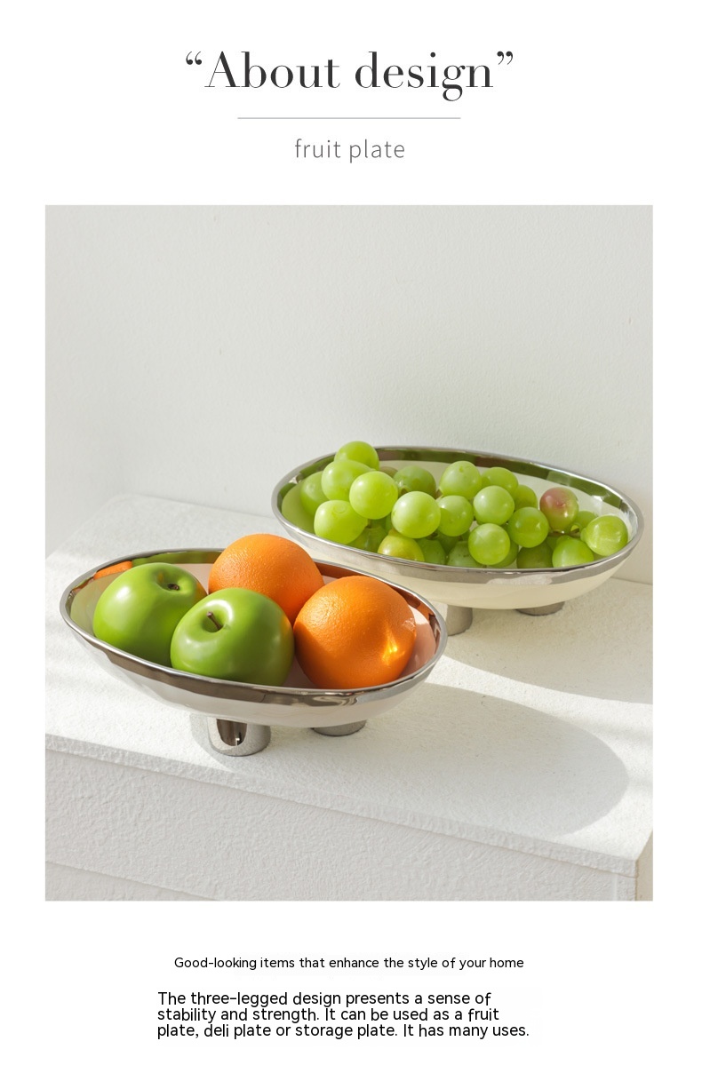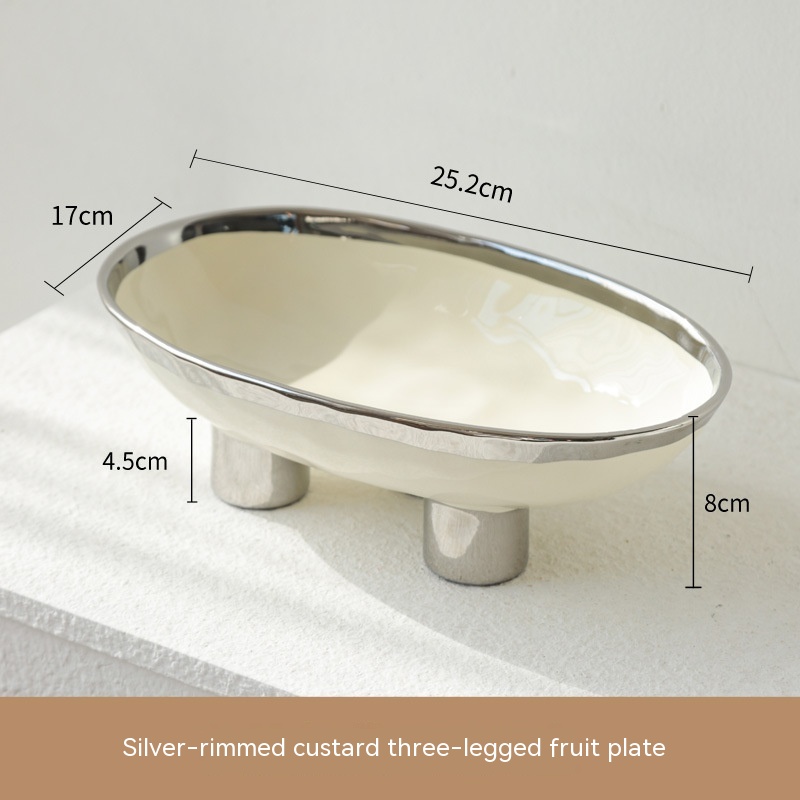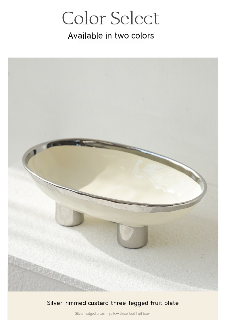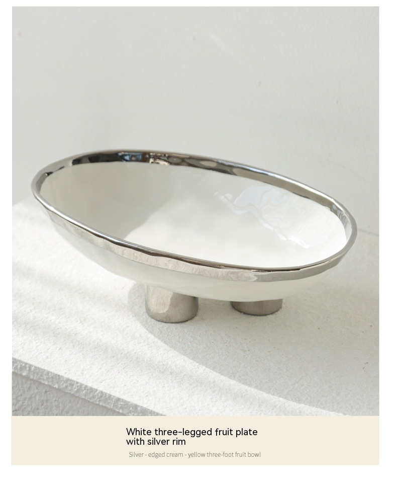 Color: three-legged fruit plate-silver edge White, three-legged fruit plate-silver edge egg yolk, three-legged fruit plate-pure white, three-legged fruit plate-Taro purple, three-legged fruit plate-light green, three-legged fruit plate-beige