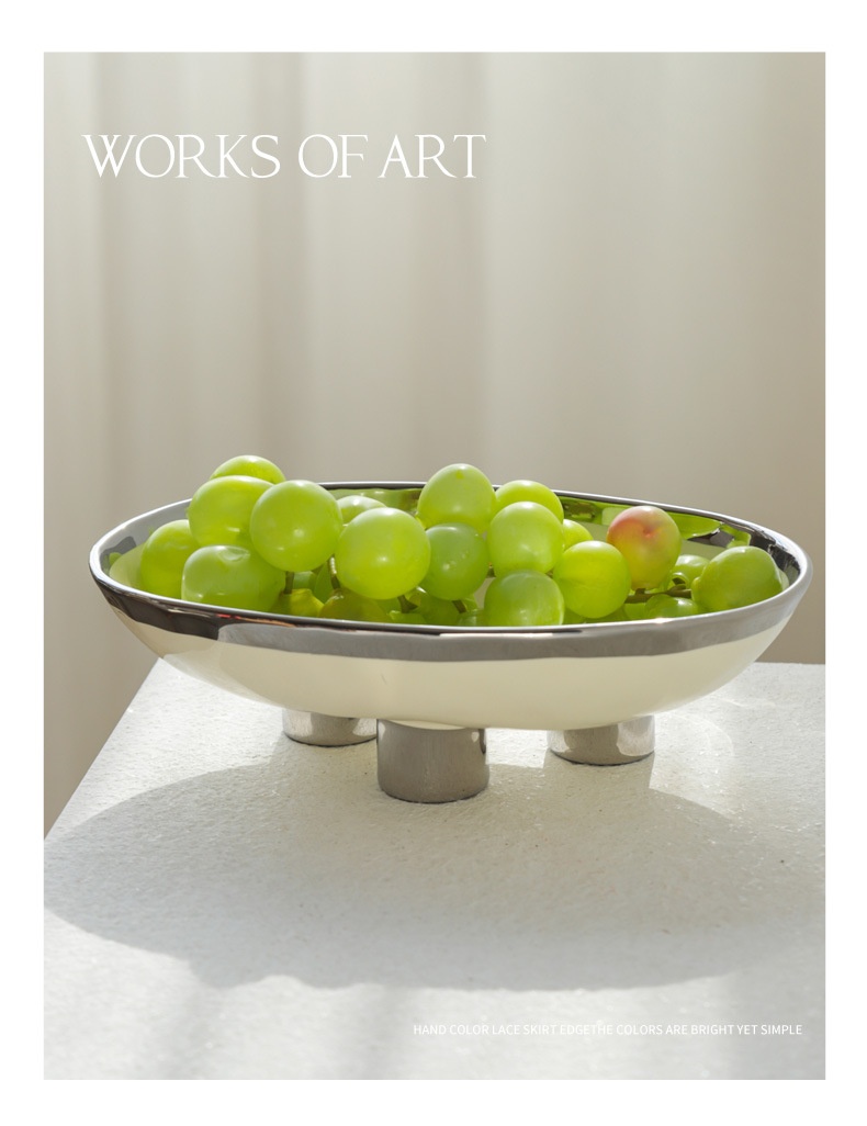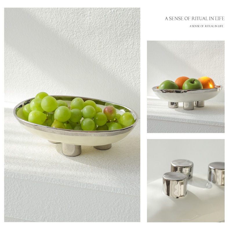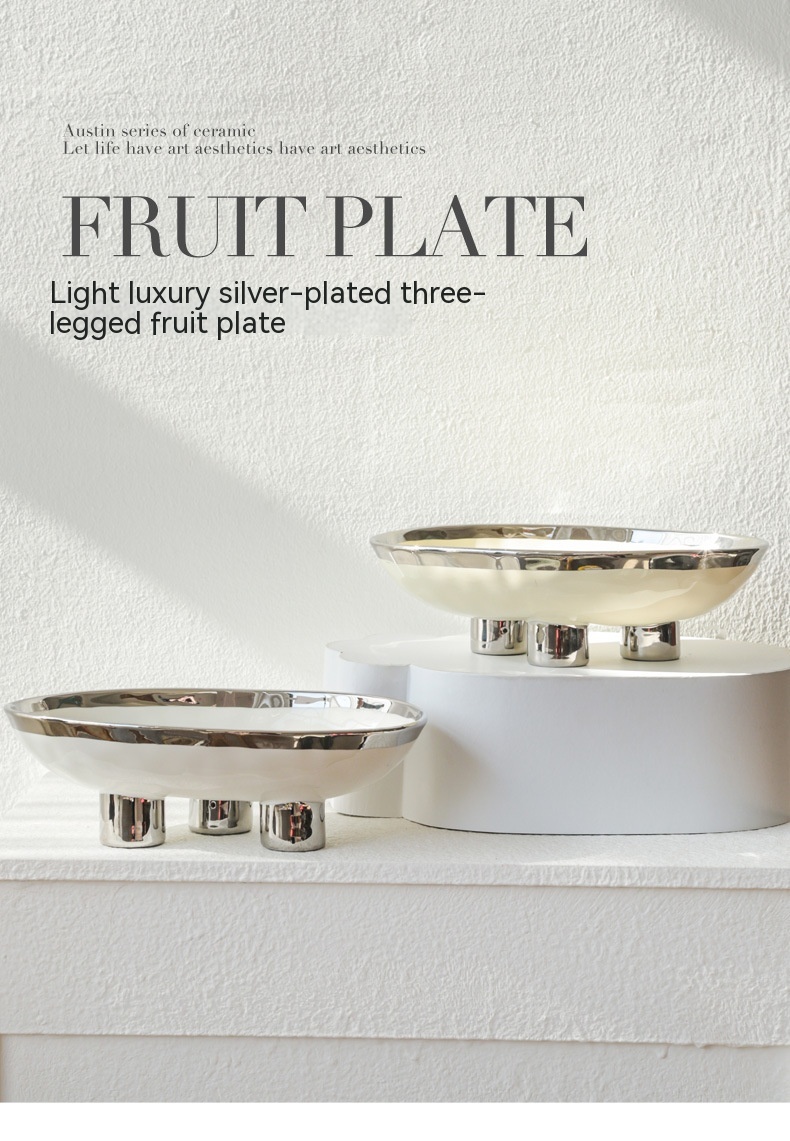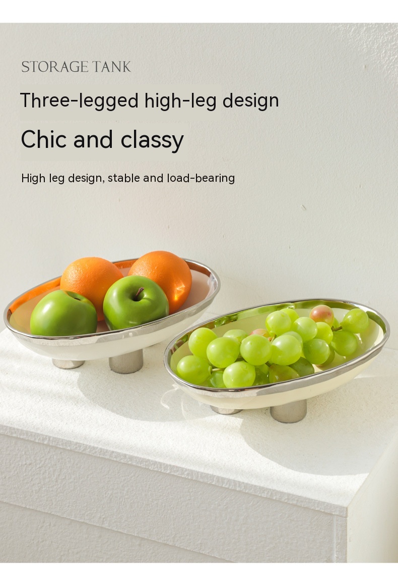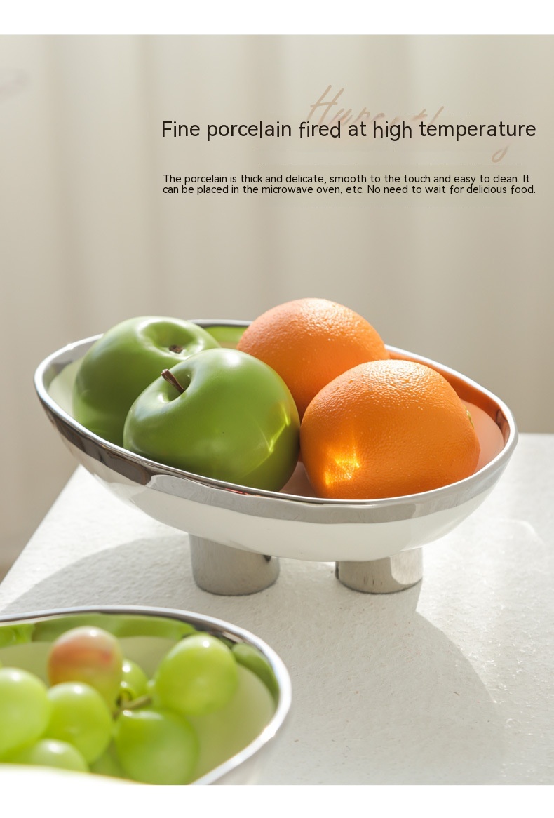 Color: three-legged fruit plate-silver edge White, three-legged fruit plate-silver edge egg yolk, three-legged fruit plate-pure white, three-legged fruit plate-Taro purple, three-legged fruit plate-light green, three-legged fruit plate-beige
