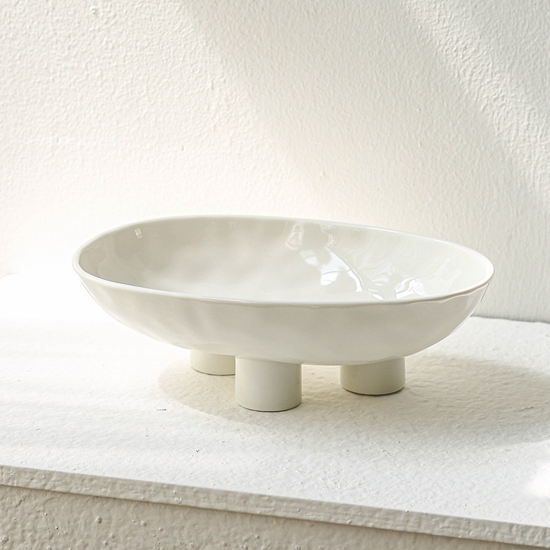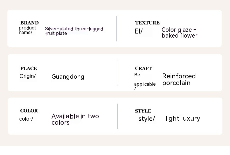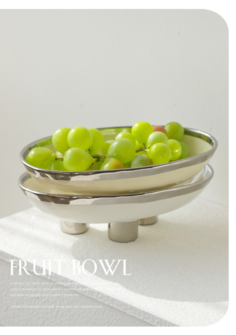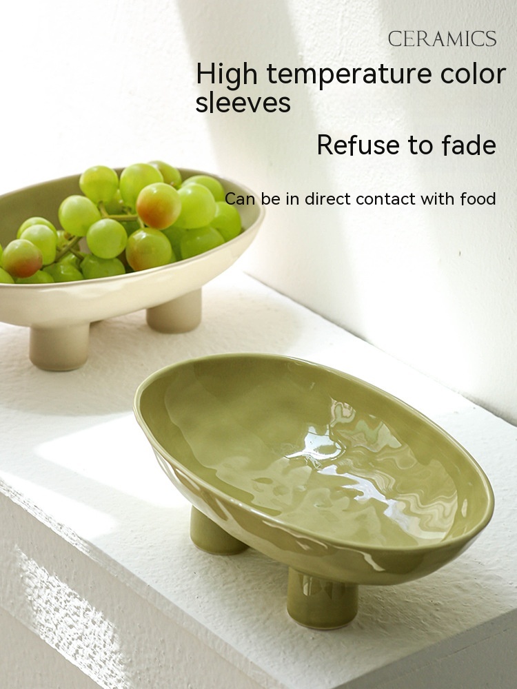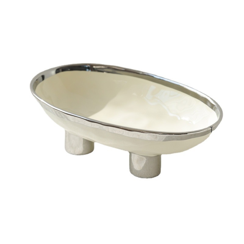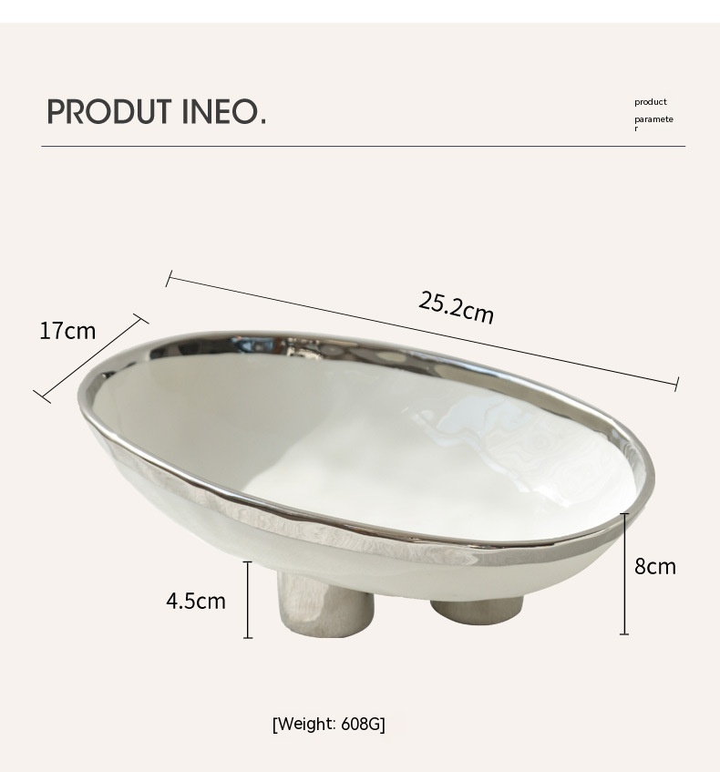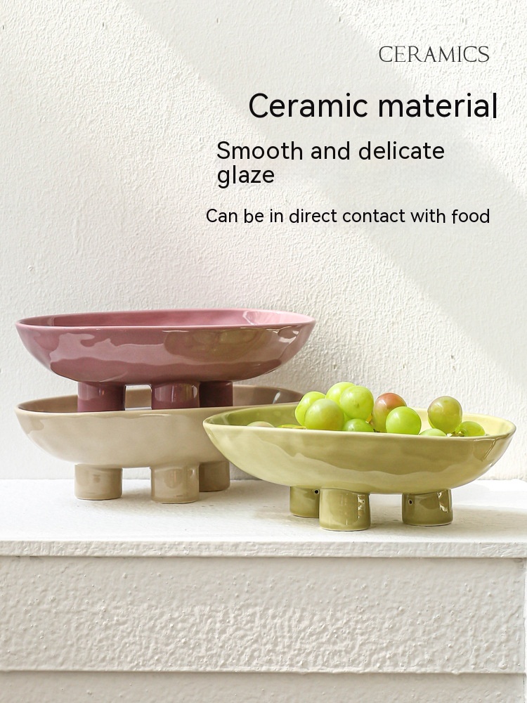 Color: three-legged fruit plate-silver edge White, three-legged fruit plate-silver edge egg yolk, three-legged fruit plate-pure white, three-legged fruit plate-Taro purple, three-legged fruit plate-light green, three-legged fruit plate-beige