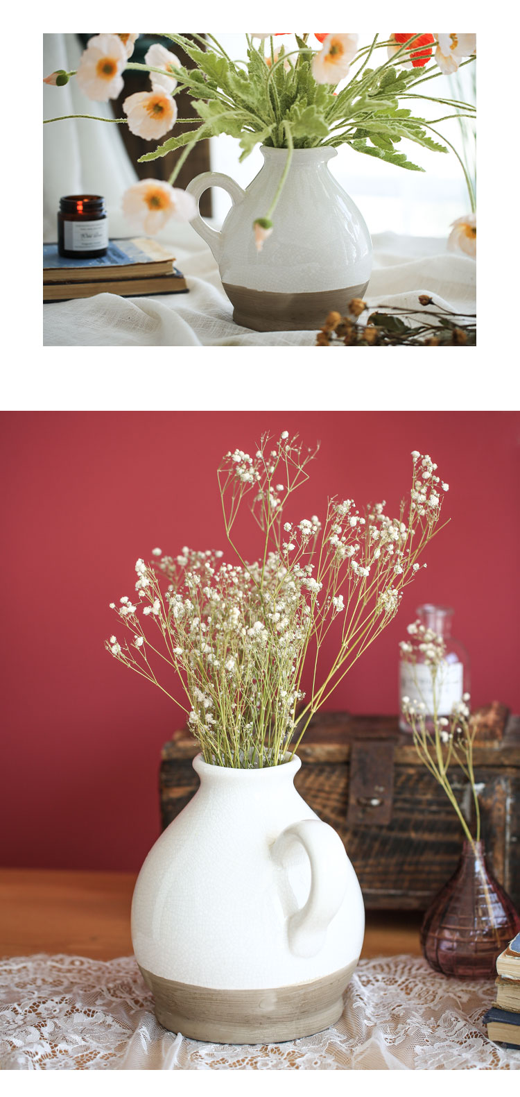 Porcelain Vase Living Room Vase Retro Small Mouth Flower