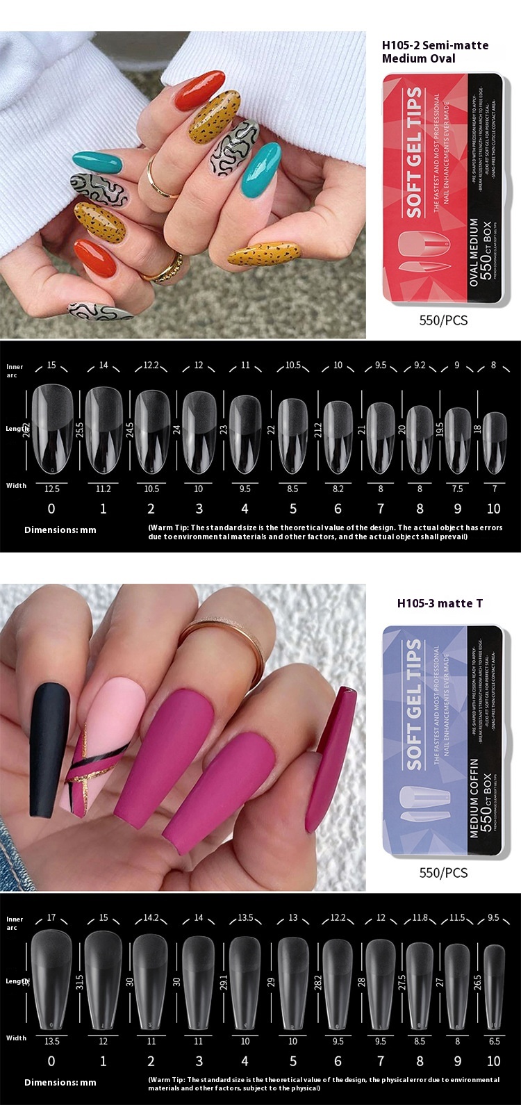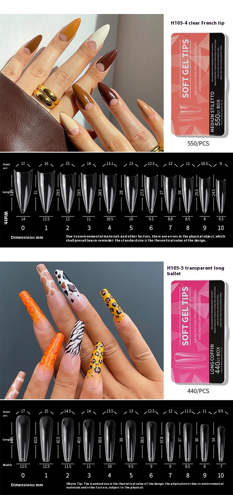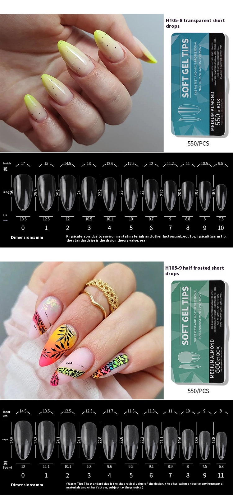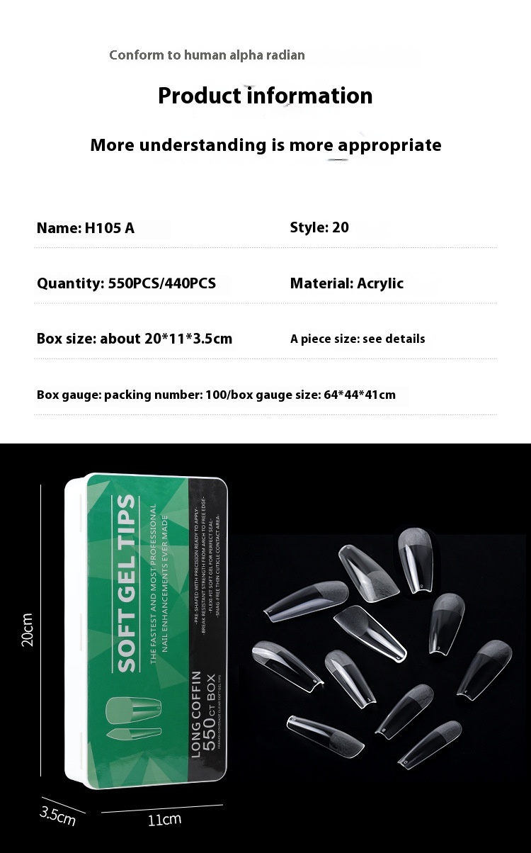 Style: short, long, medium, oval, drop shape, transparent nail tip, almond, long tip, ballet, European Square