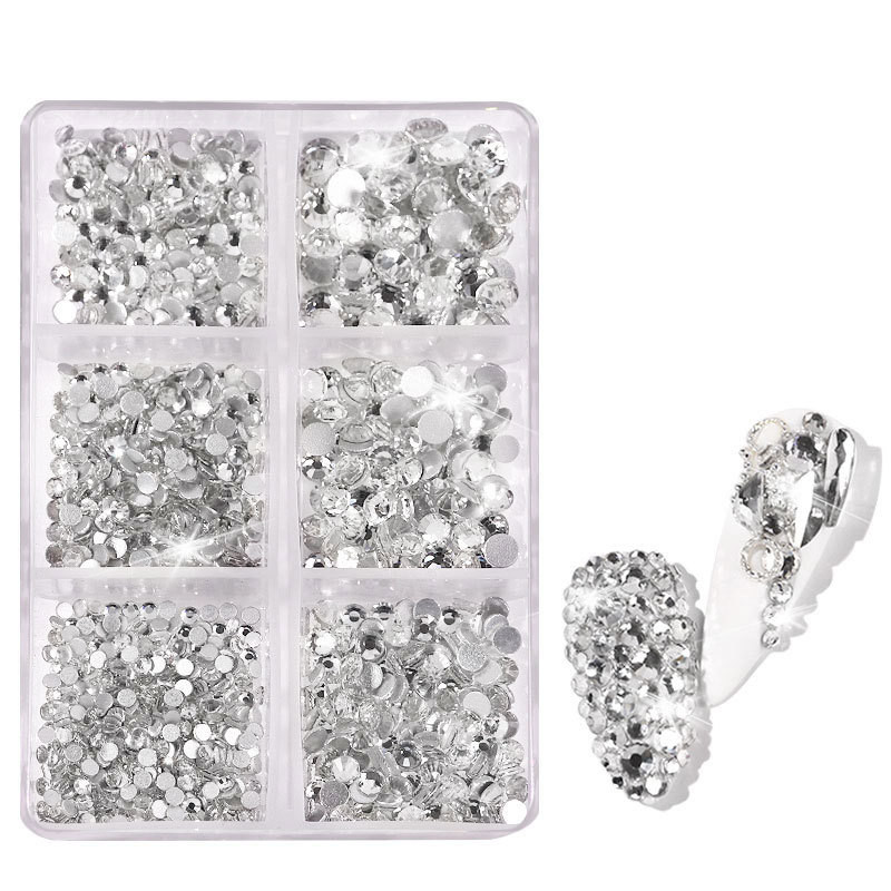 1 style: 6 grid boxed rhinestones 01 white diamonds