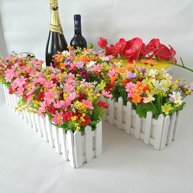 Material: wooden fence + plastic silk cloth flower