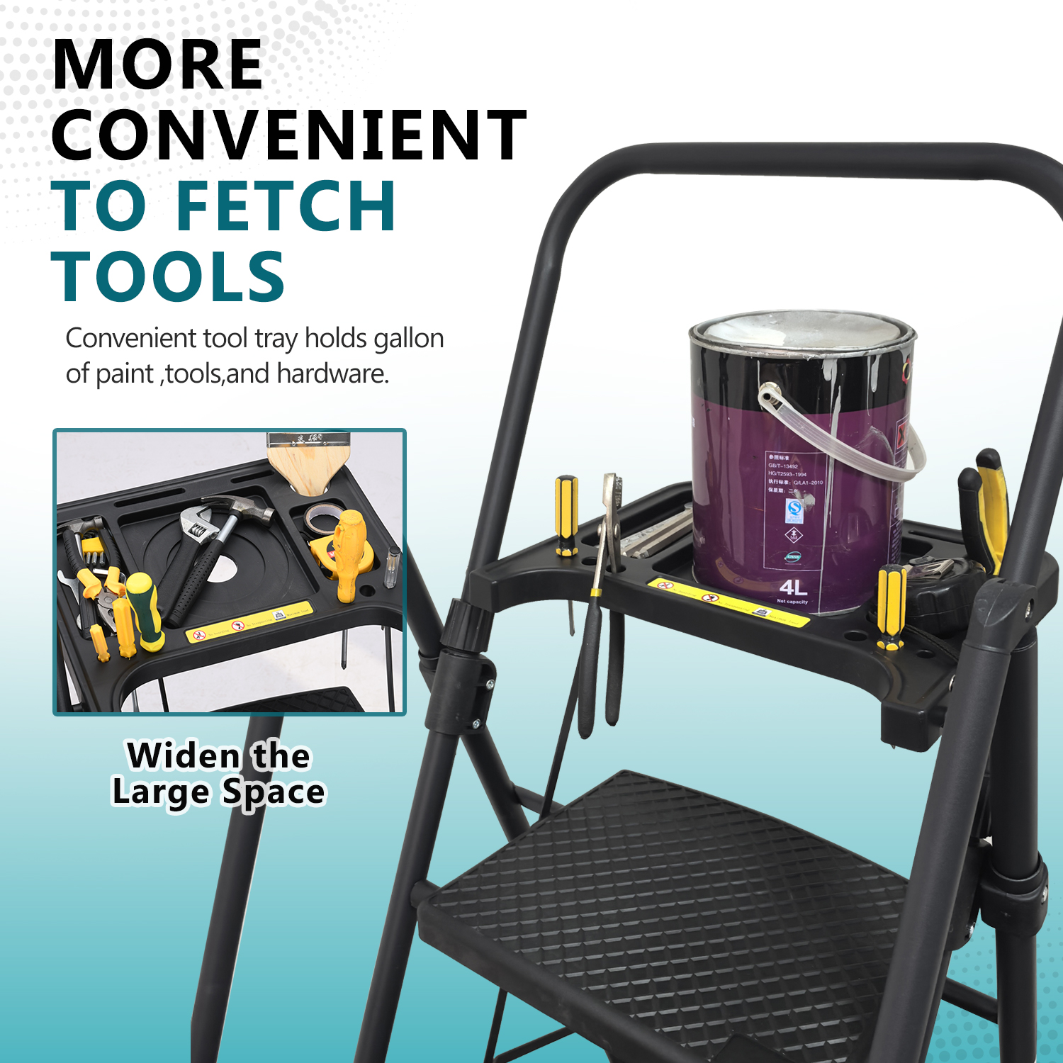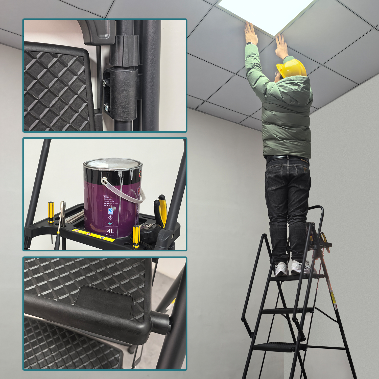 Durable Steel Construction: Built with a high-strength steel frame and reinforced cross-brace support, this ladder delivers premium reliability and peace of mind with every step.