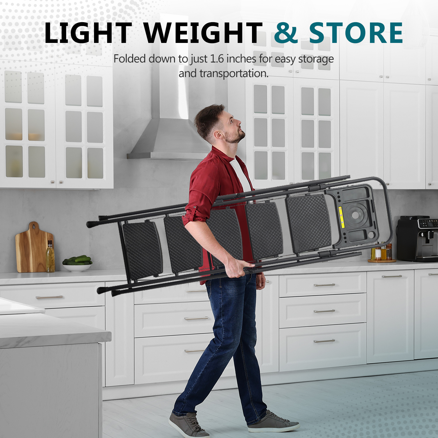 Unlike fragile alternatives, our ladder combines sturdy steel structure, intelligent storage capabilities, and foldable convenience - all in a compact design. It is home essentials that simplify your life!