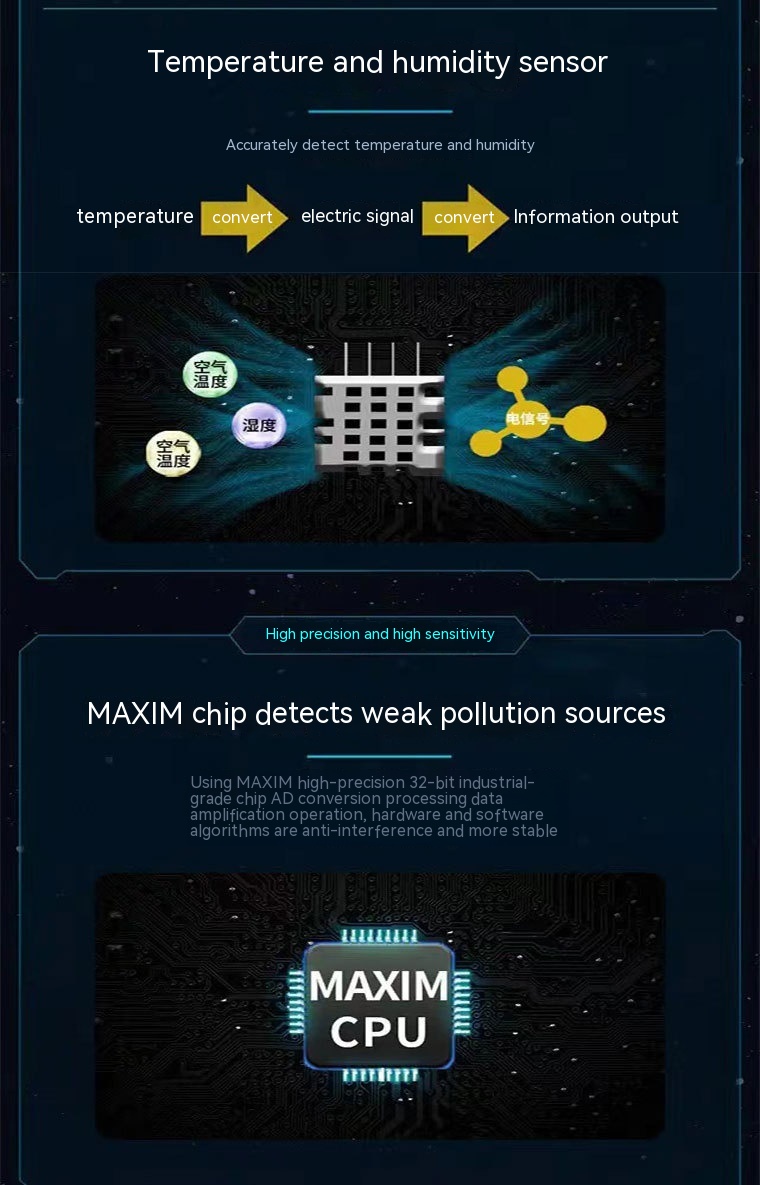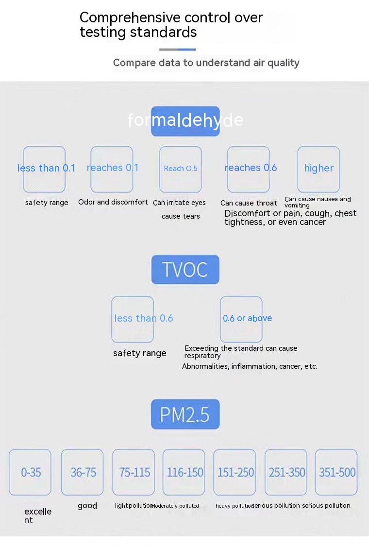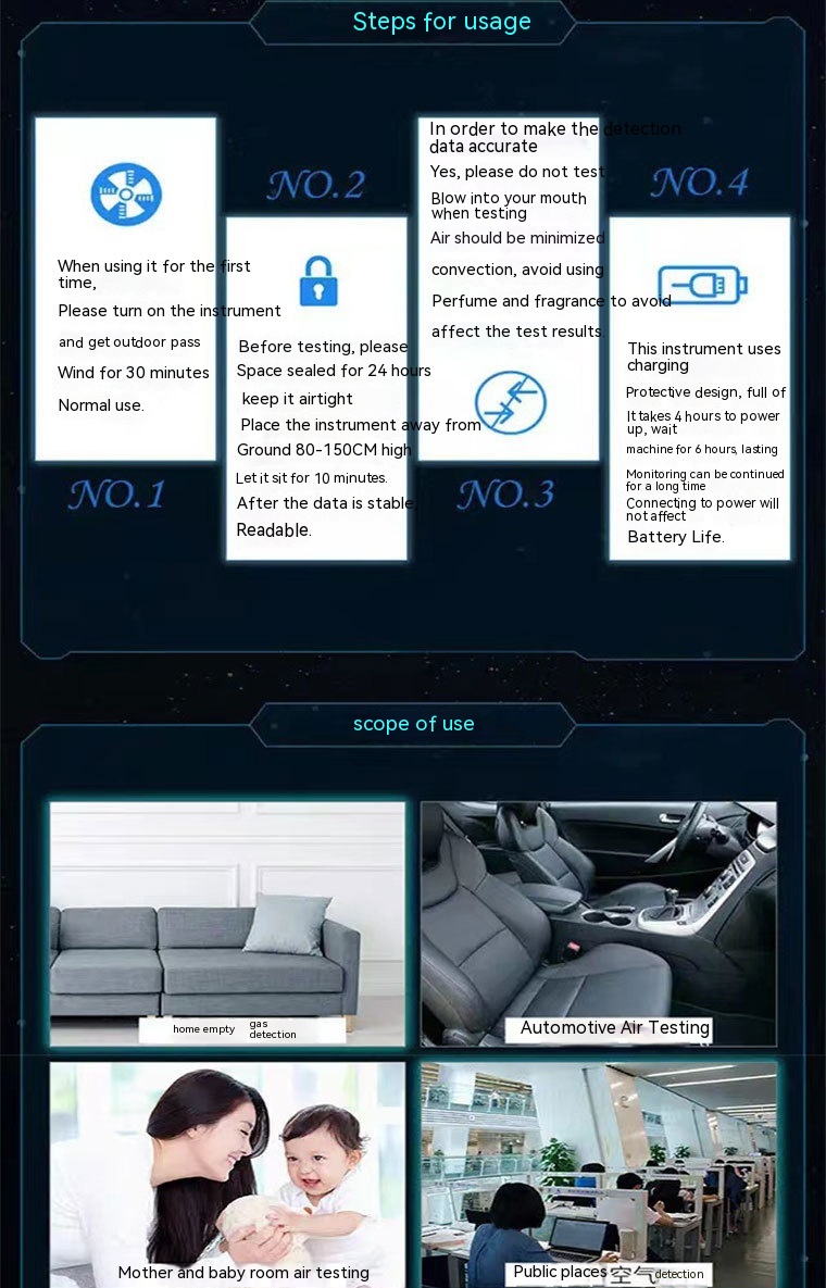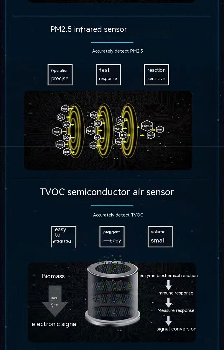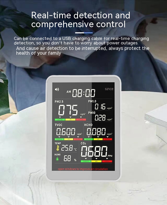 Measurement object: Carbon Dioxide/formaldehyde/PM2.5/TVOC/temperature and humidity, etc.