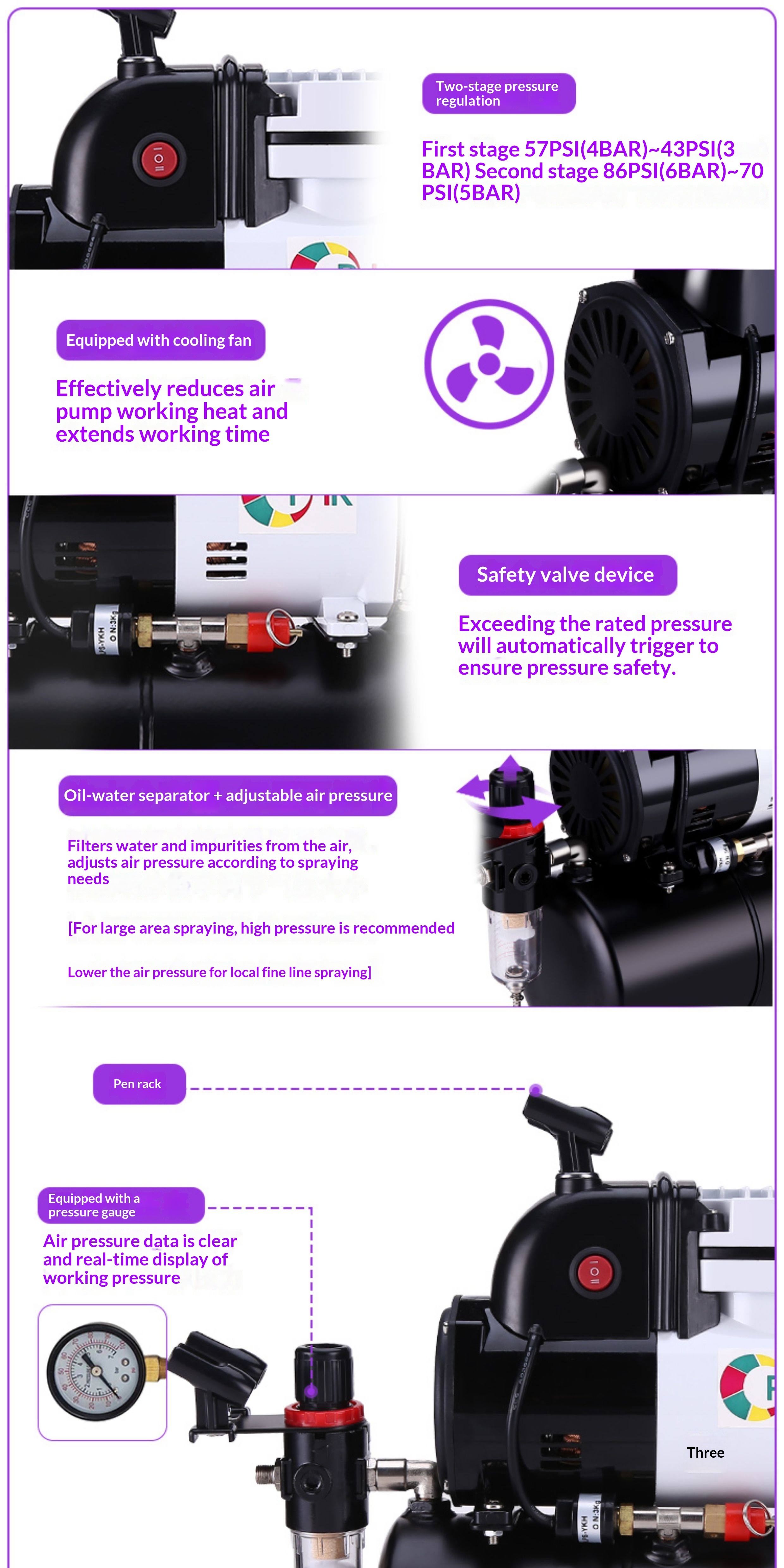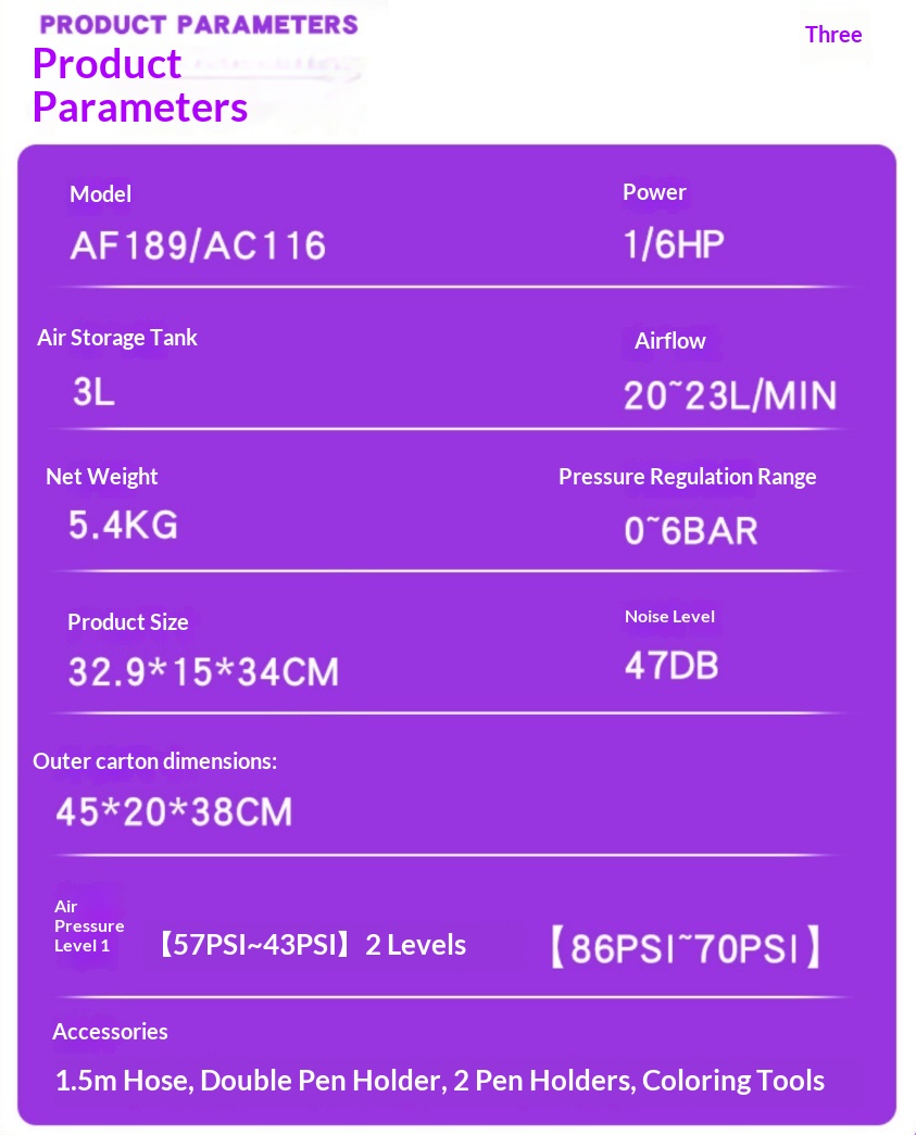 Product information:Specification: Two-speed air pump [110V] Type: Air spray gun Material: Metal Rated power: 124W