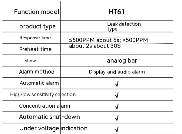 Specifications: Huabo HT59 gas detector, Huabo HT60 gas detector, Huabo HT61 gas detector