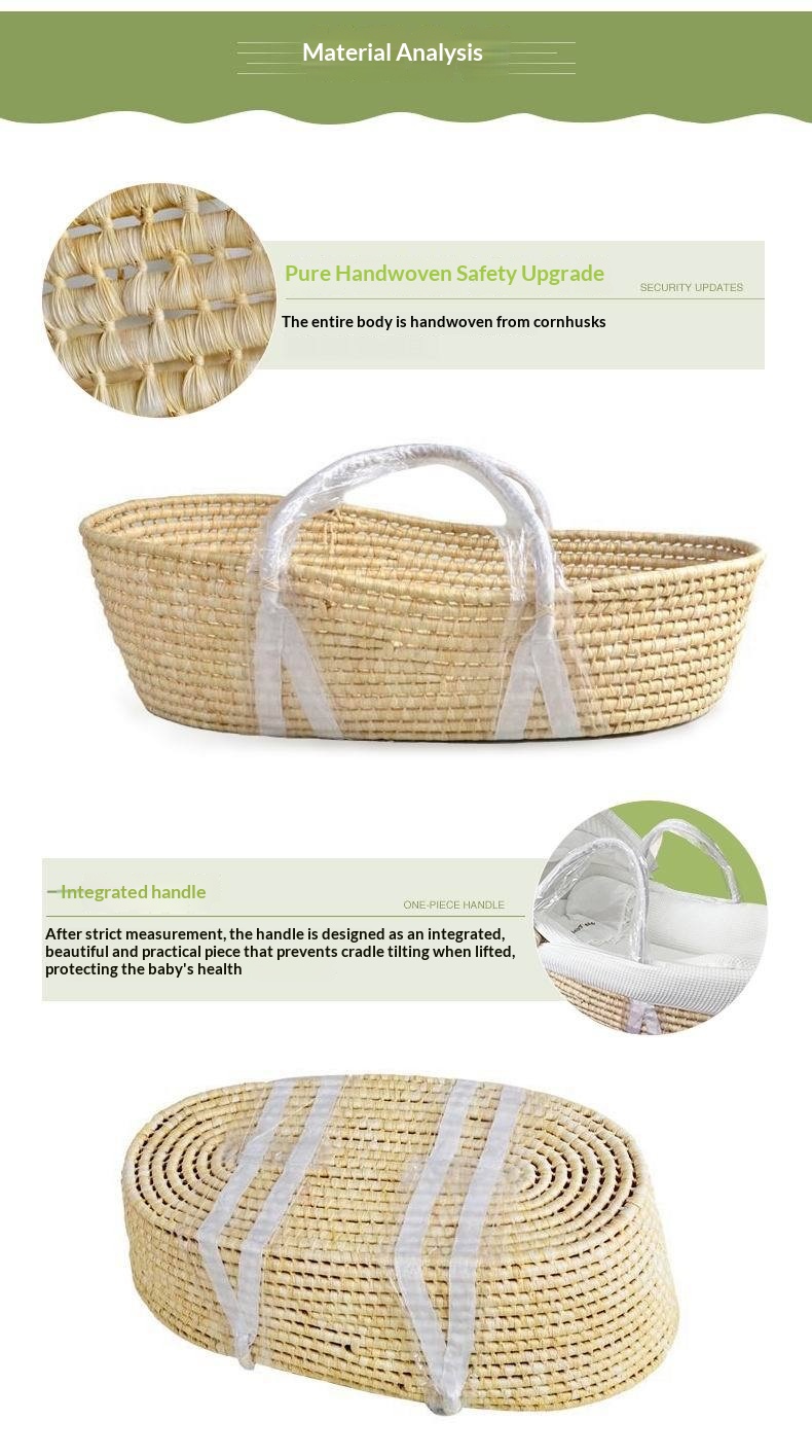 Color: Beige single-layer elongated corn husk basket, Snow-white single-layer elongated corn husk basket