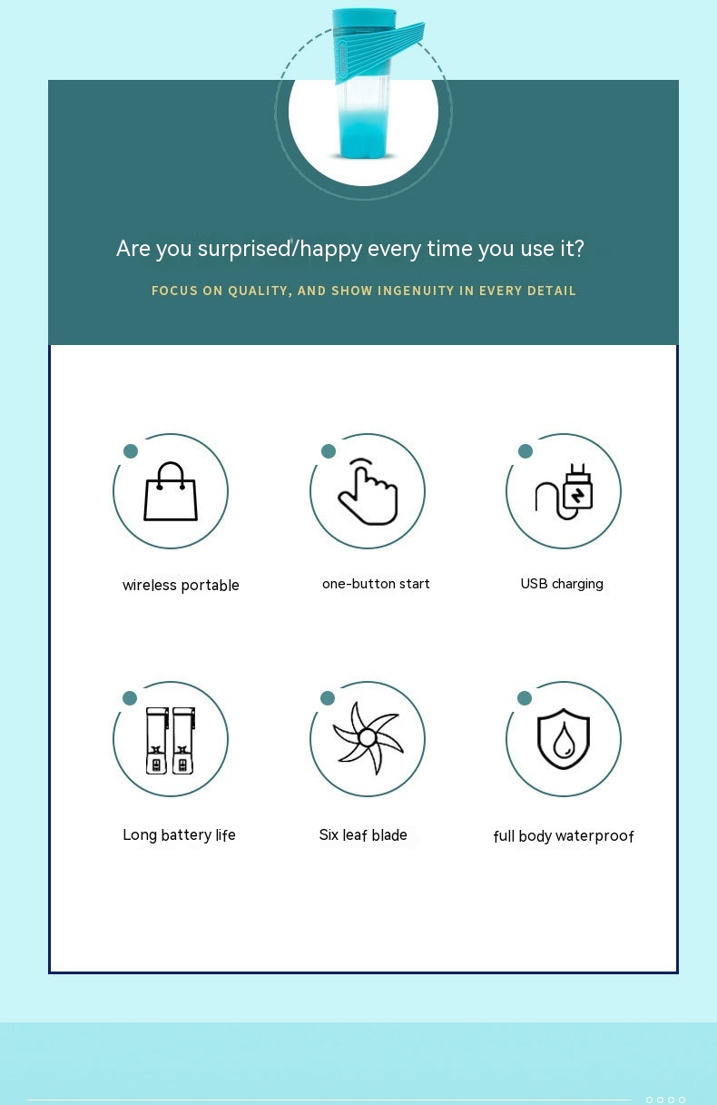 Additional functions: supplementary food nutrition, portable charging, automatic cleaning, silent noise reduction, rapid pulp production