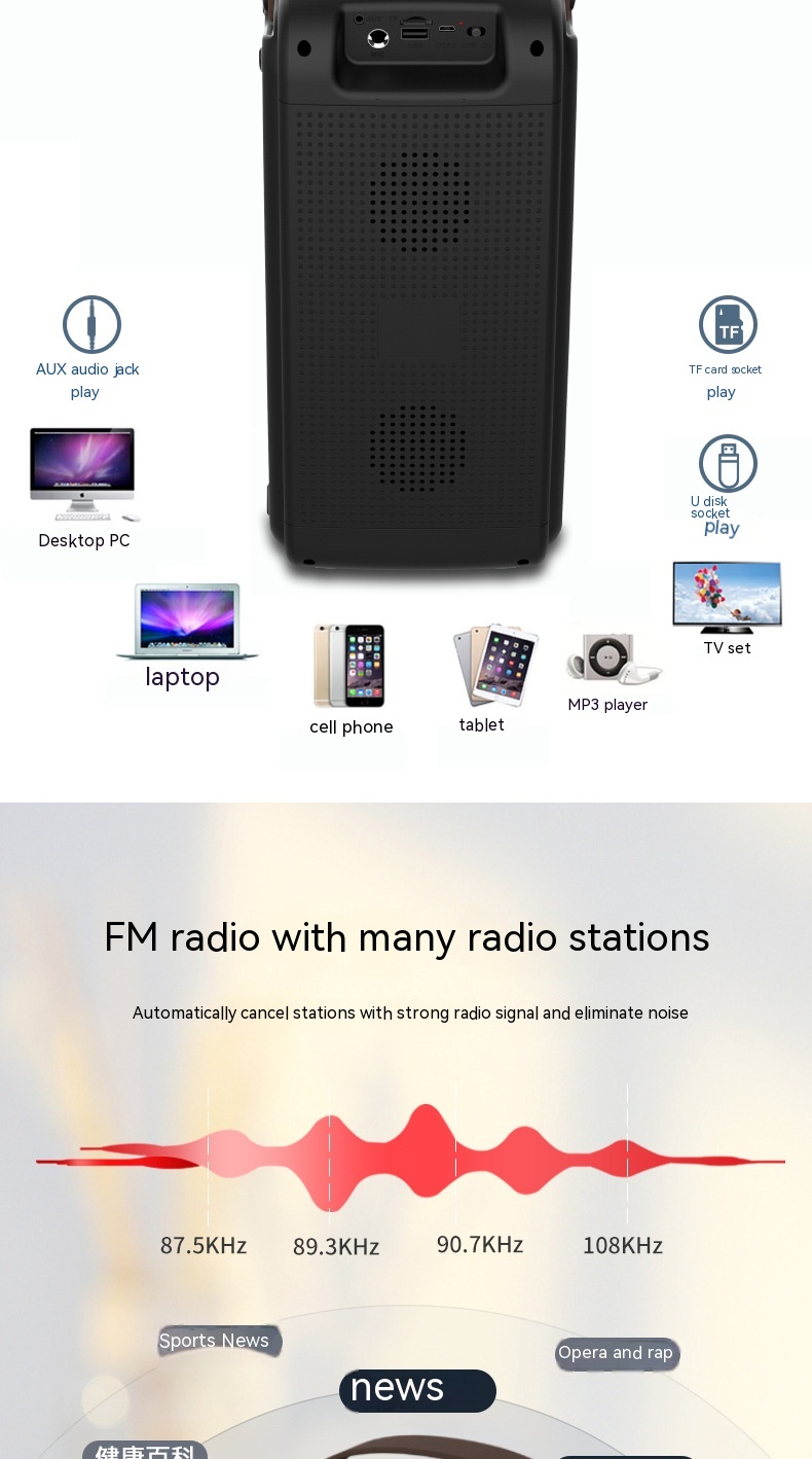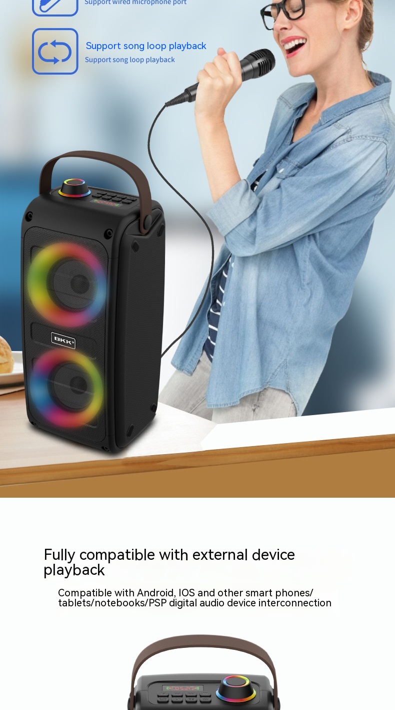 Applicable scenarios: Desktop, fitness, outdoor, home, mobile/portable, karaoke, square dance
