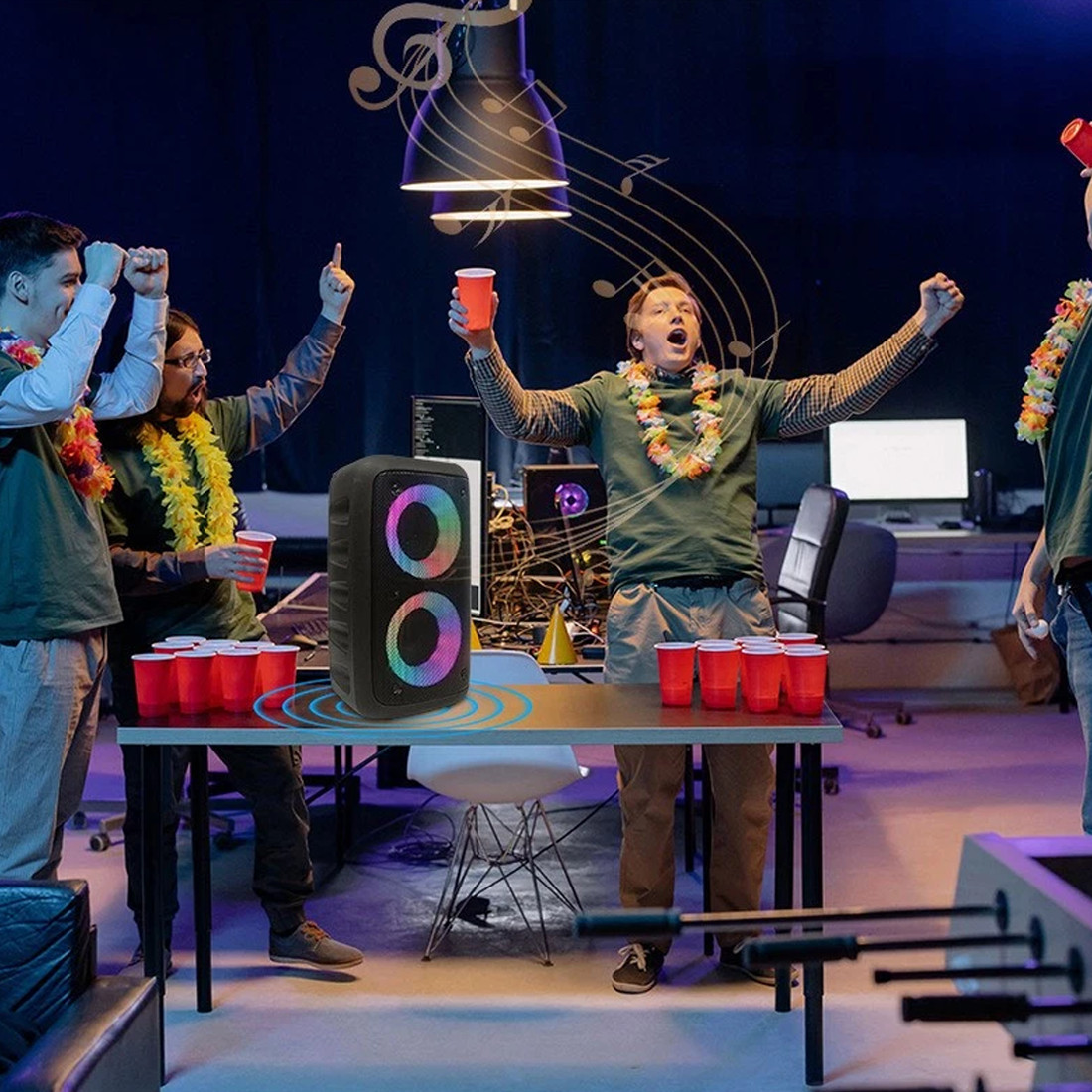 -Colorful LED lights: Enhance your listening experience with vibrant, colorful LED lights. Create a dynamic and fun atmosphere for any occasion