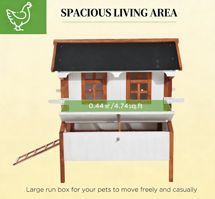 • - READILY PORTABLE: Multiple handles on each side makes this backyard chicken coop easily movable, creating a healthier environment for your chickens and your yard. Placing the coop in different locations can result in happier chickens and better quality eggs!