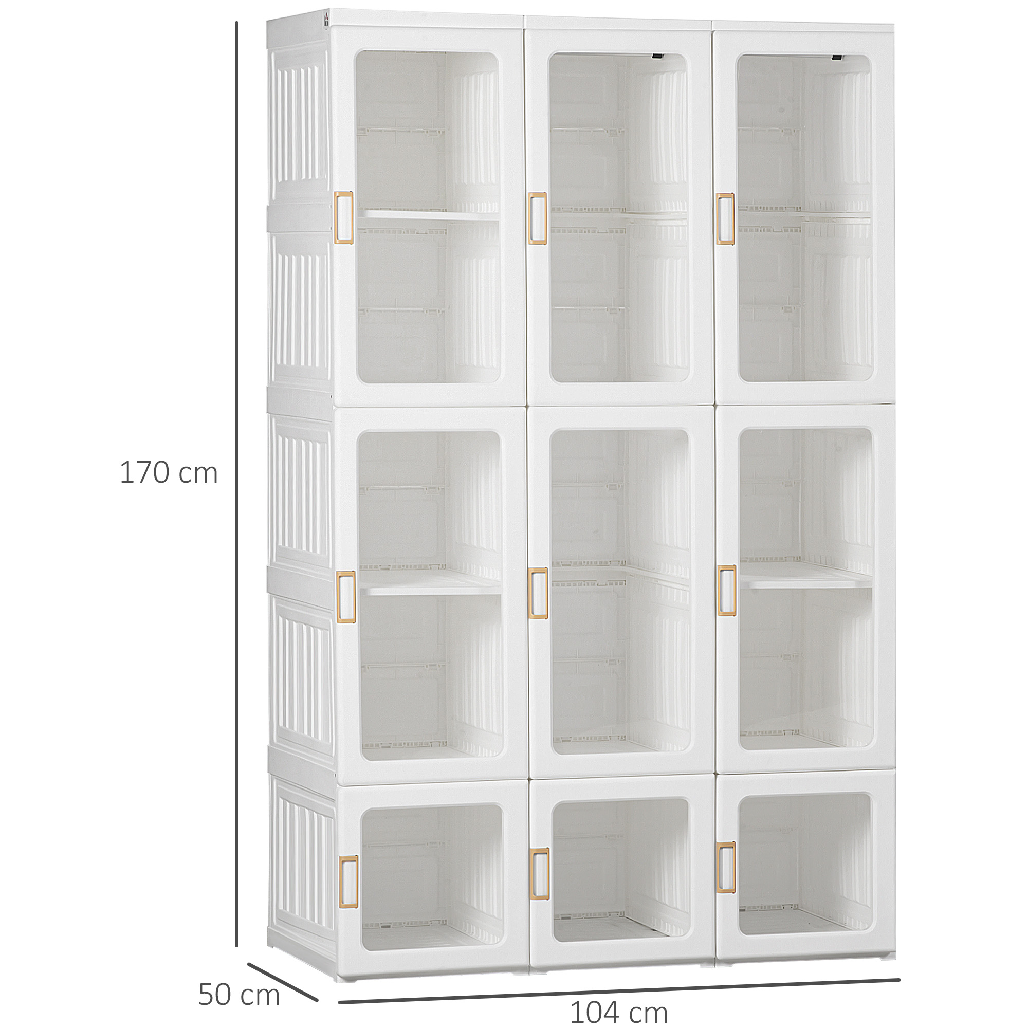 Add a touch of simplicity and style to your home with this portable wardrobe. Featuring clear door panels and a bright, modern design, it fits perfectly in your living room or any space. With modular compartments and two hanging areas, it provides lots of storage for your clothing while combining functionality and elegance to meet your needs.