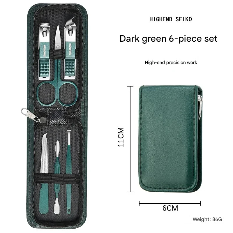 Portable Dark Green Nail Clippers Set 6-piece Nail Clippers Set Home Nail Clippers
