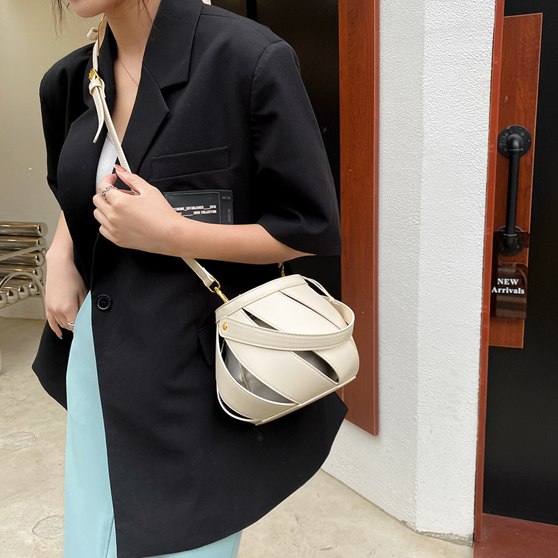 Size: top width 14cm, bottom width 21cm, height 16cm, handle height 12cm, shoulder strap 115cm