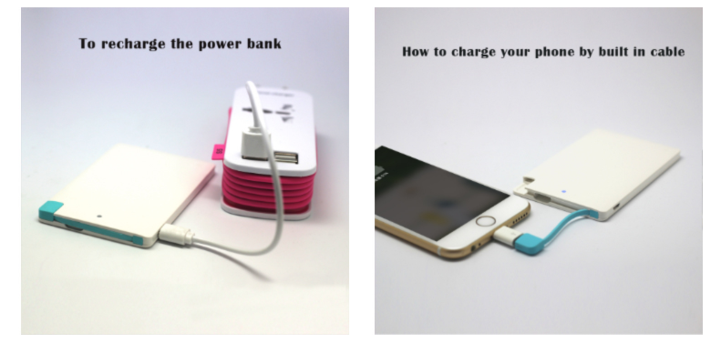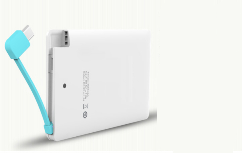 Portable Fast Charging Light And Thin Power Bank With Cord