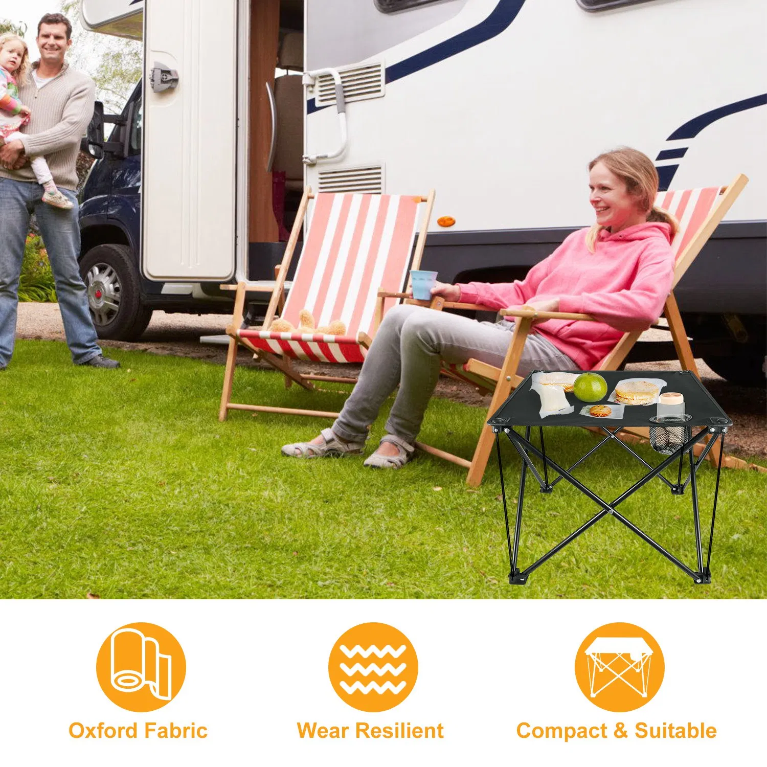 *STURDY & DURABLE TABLE TOP: Made from thickened 600D oxford fabric materials, the table top of our table is tear-proof, scratch-resistant, abrasion-resistant and stain-resistant. And its back side is coated with waterproof layer to protect against water permeation.