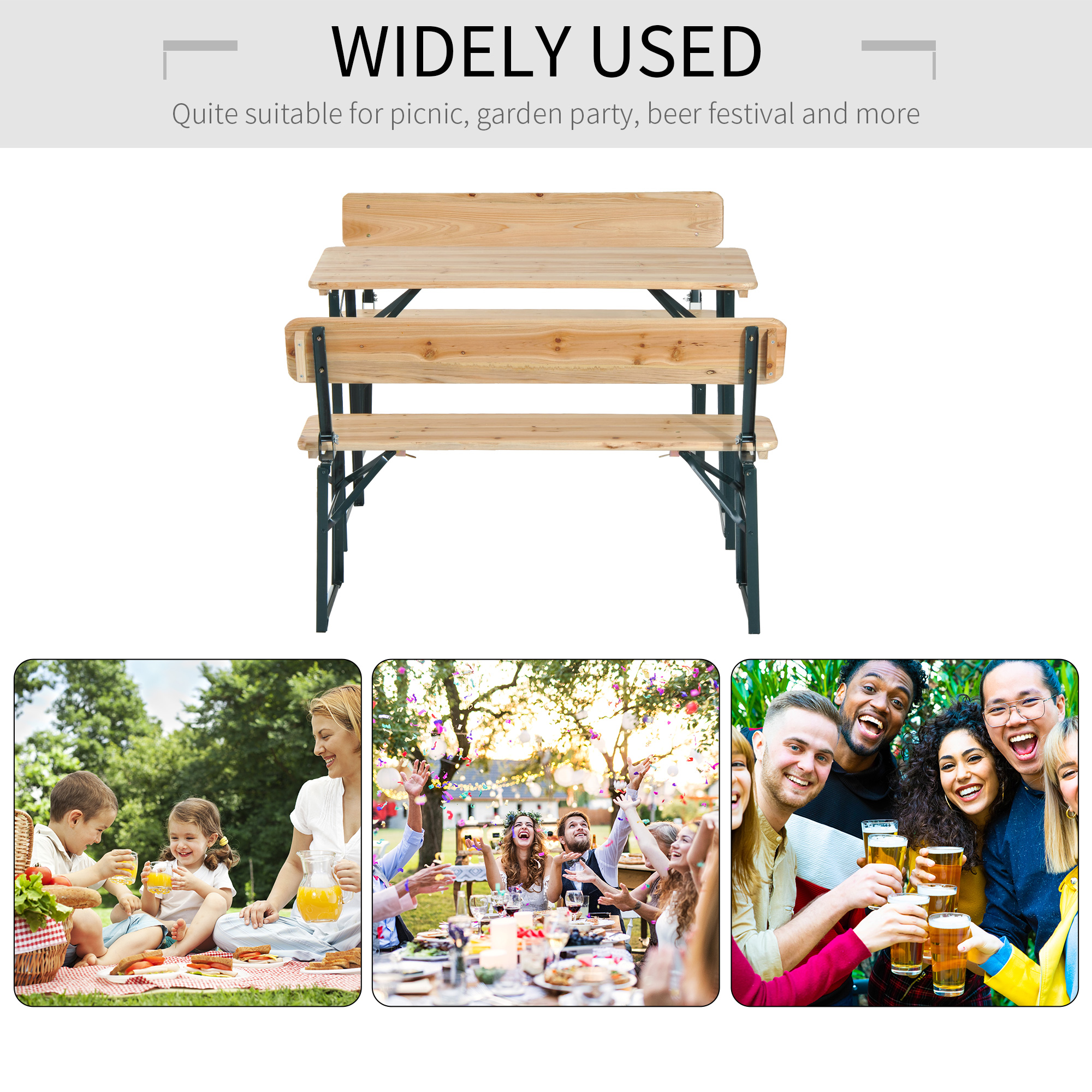 This garden table and bench set is a great item to have in your garden or patio, it can be easily being stored using a simple folding system. The folding garden furniture comes complete with a bench where the backrest folds down and a table. This is ideal for when you have guests around and require extra seating and table.