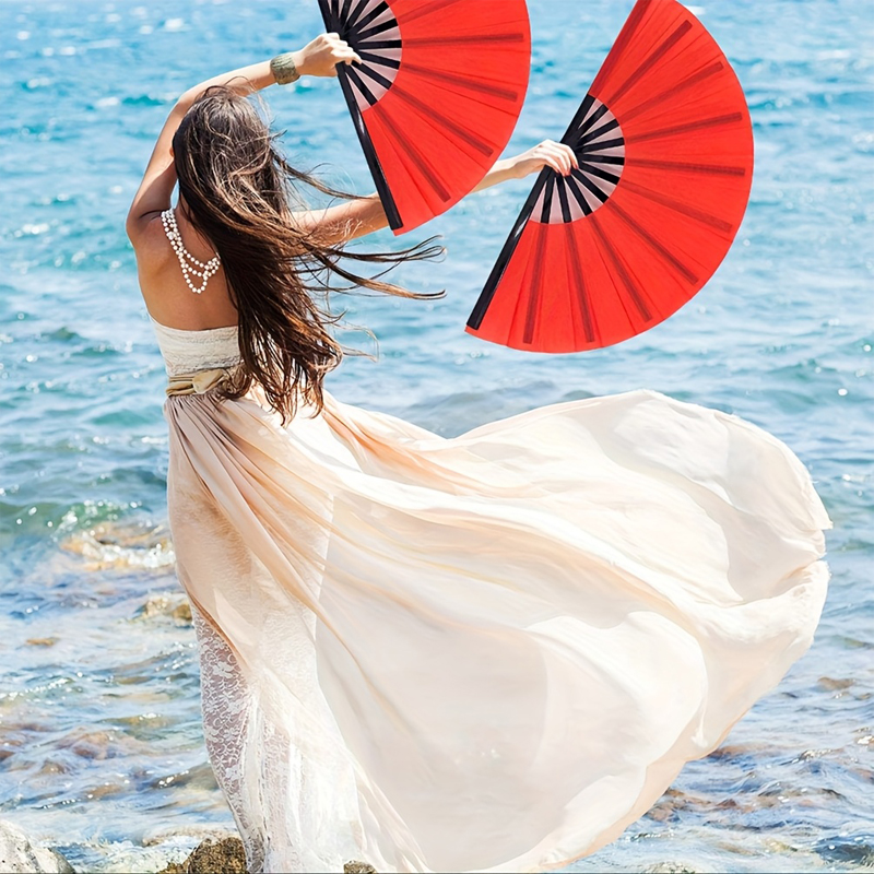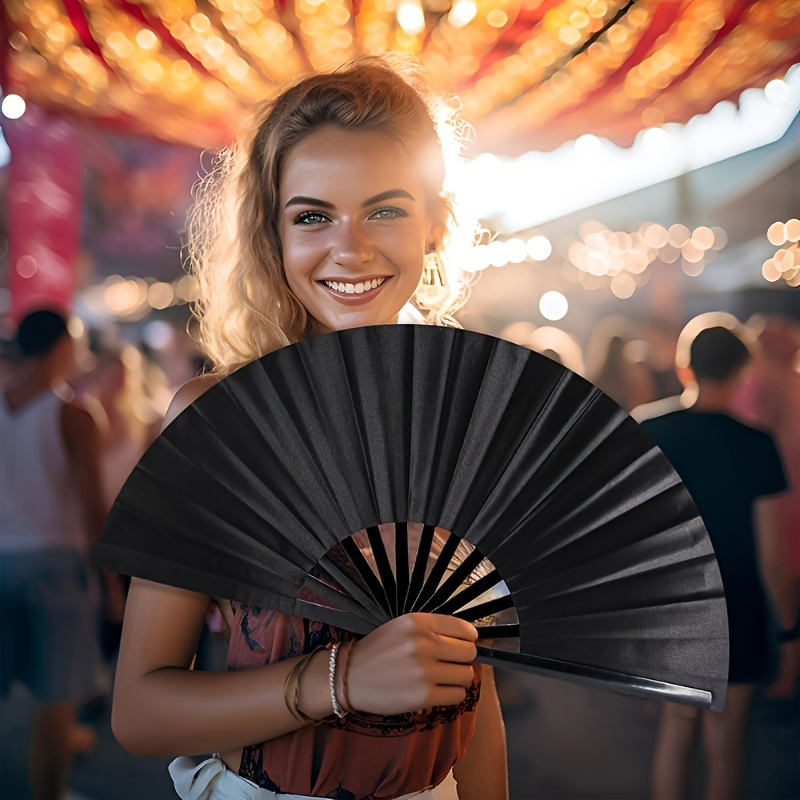 2.【Portable & Foldable】Take it anywhere, rock it everywhere. This folding hand fans folds up small but brings big vibes — perfect for festivals, raves, trail rides, or dance floors. Lightweight, easy to stash, and ready to snap open when you need to cool down or show off.