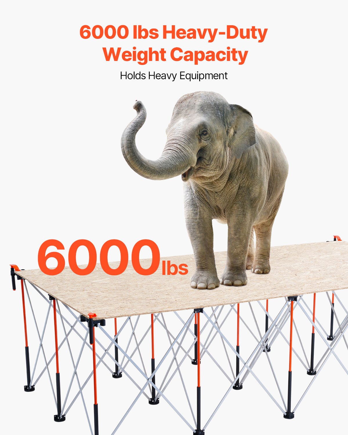Sturdy and Stable: Made with 15 aluminum alloy supports and reinforced tubing, this portable folding workstand holds up to 6000 lbs. It has passed pressure tests, providing reliable support for your tasks and ensuring long-lasting durability