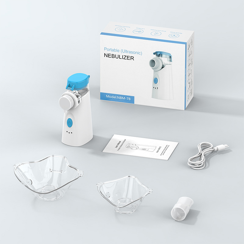 Color: Blue and White (FDA, TÜV, CE, MDR) – Built-in Rechargeable NBM-7B Micro-Net Nebulizer