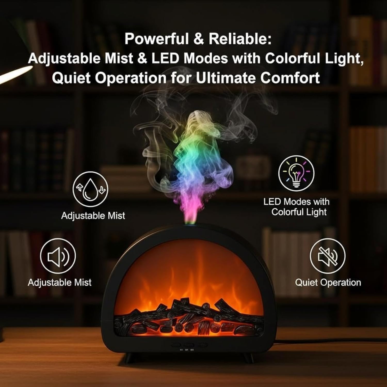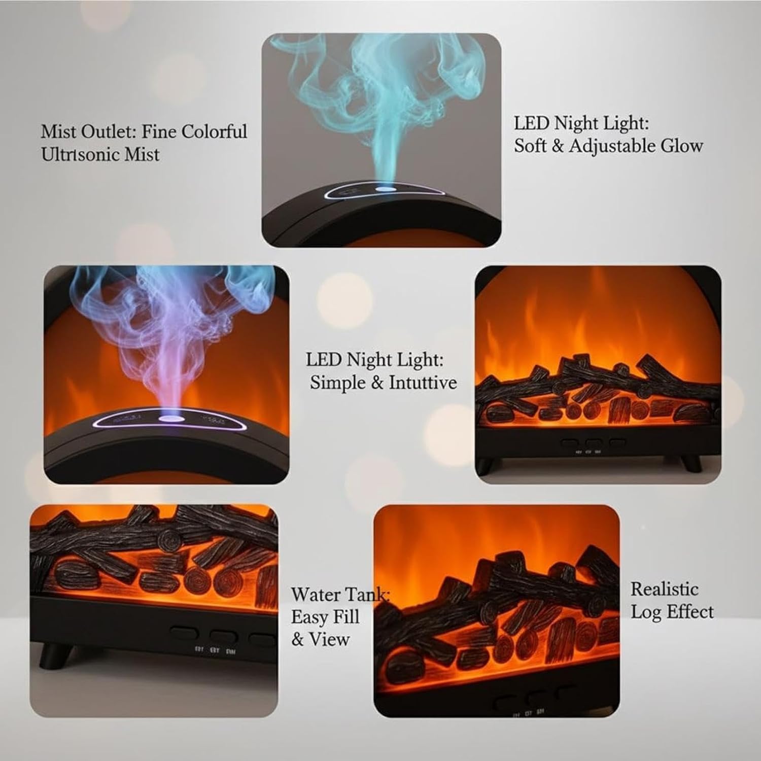 【Multi-Color LED Options】Features adjustable lighting including flame effect and colored mist for customizable ambiance. Use it as oil diffuser, flameless diffuser cdle, or fire humidifier diffuser to soothing aromatherapy with colorful mist ytime