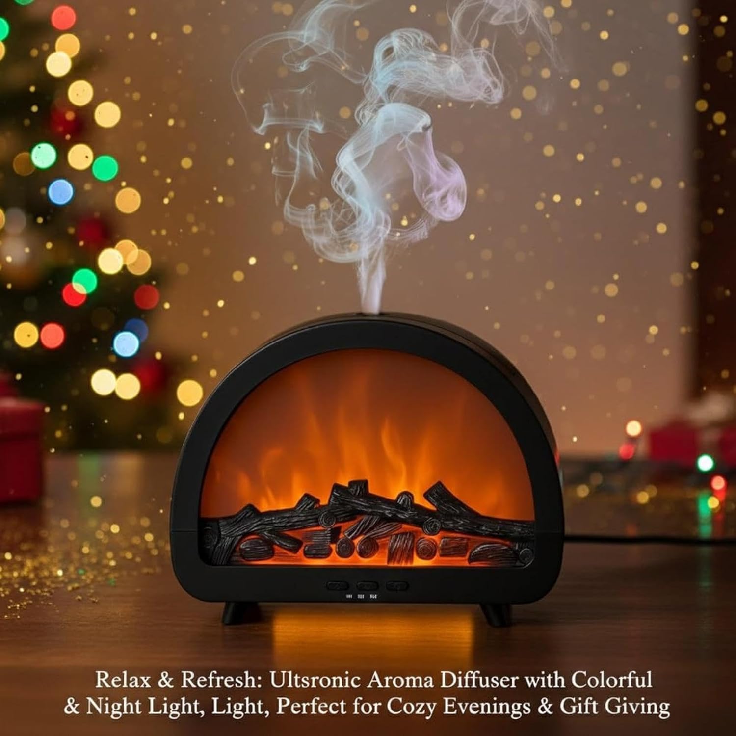 Portable Humidifier, Large Mist Volume, Fireplace Flame Aromatherapy Machine, Home Office Desk Essential Oil Automatic Fragrance Diffuser