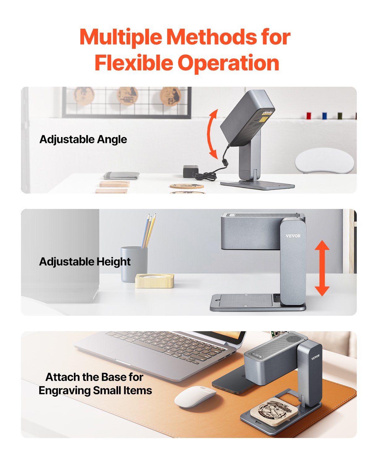 Flexible Adjustment: This high speed portable engraving machine allows adjustable angle and height. The base can be detached for engraving large objects, or attached for precise engraving of small items. Its versatility and convenience suit any engraving work.