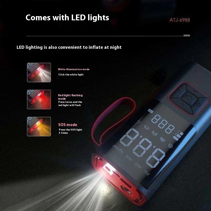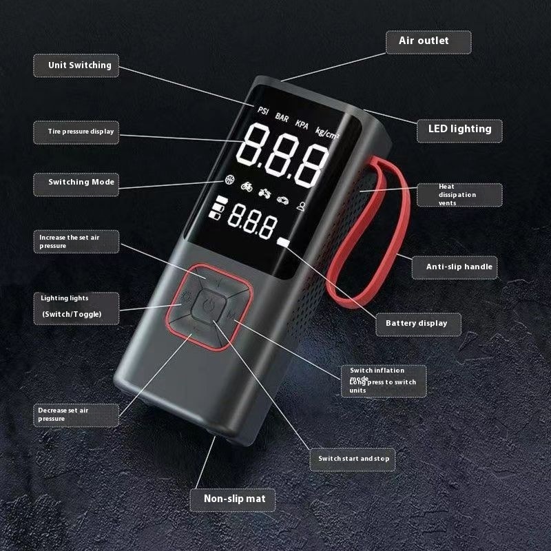 Additional functions: lighting, tire pressure gauge, warning light, USB charging