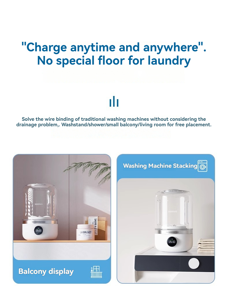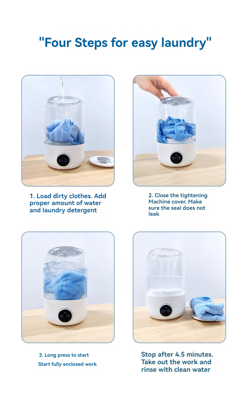 Portable Mini Washer, USB Rechargeable Cordless, 1.2L Capacity For Underwear, Socks & Baby Clothes, 3 Cleaning Modes, Quiet & Compact For Travel, Dorm, Apartment