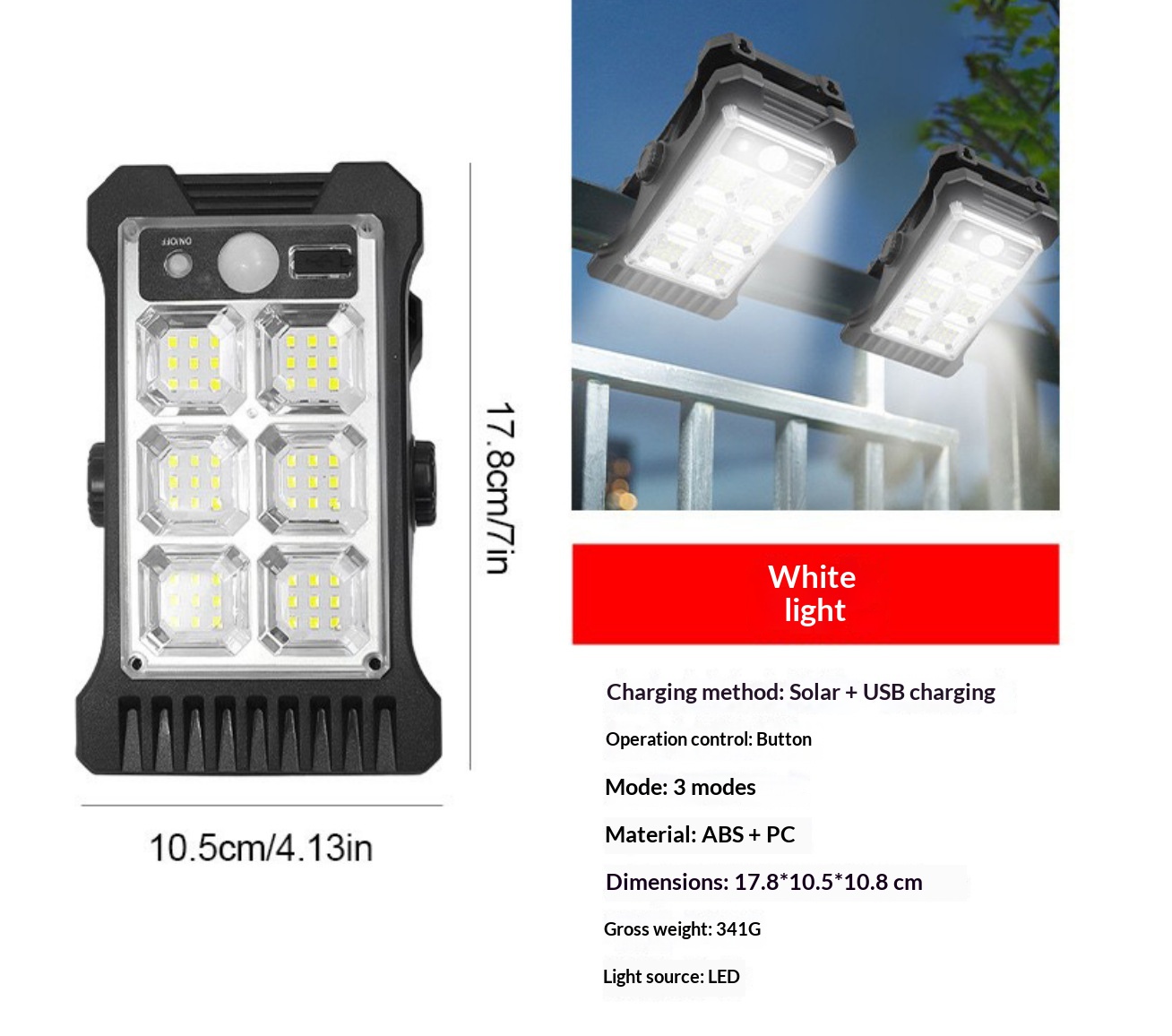 Power Source: Solar + USB Charging