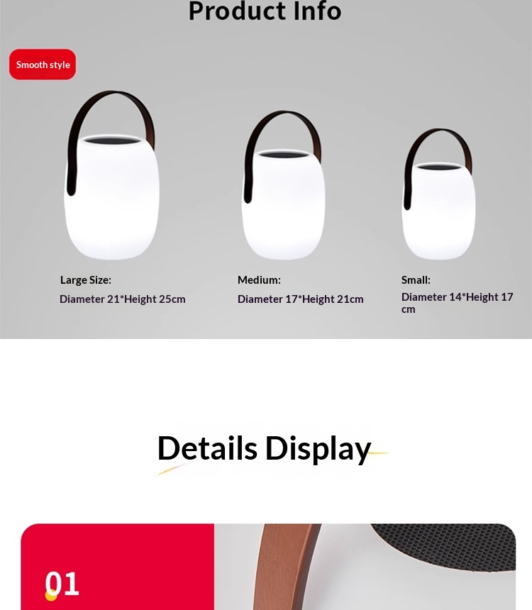 External Dimensions: Solar-powered—medium size, multi-color with warm light, comes with a remote control; Solar-powered—large size, multi-color with warm light, comes with a remote control