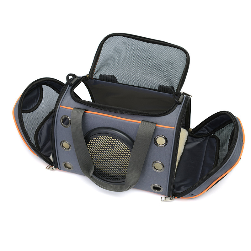 Made of oxford fiber and high quality nylon, it has good abrasion resistance and breathability and is suitable for pets. There is a mesh section on the top and venting holes on one side to keep the air fresh and cool.