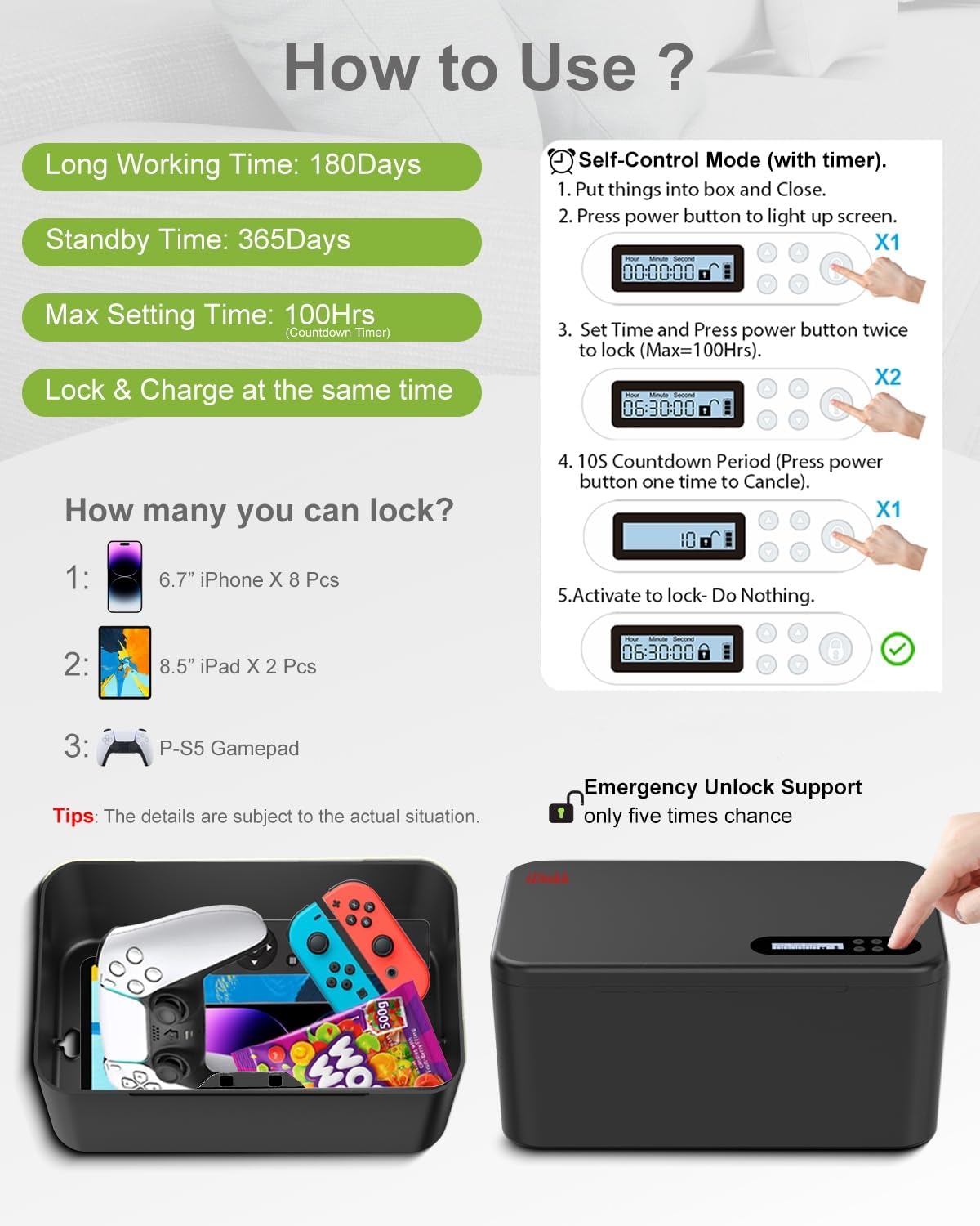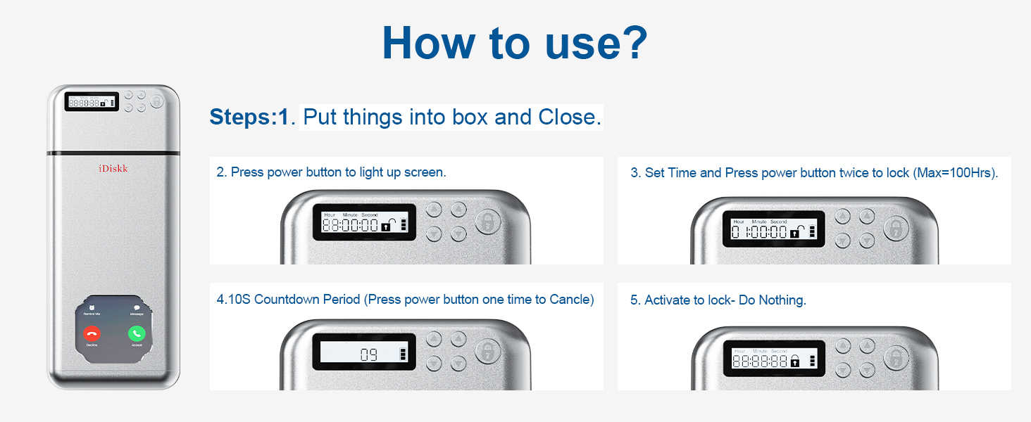 Maximum lock time that can be set: 99 hours and 59 minutes