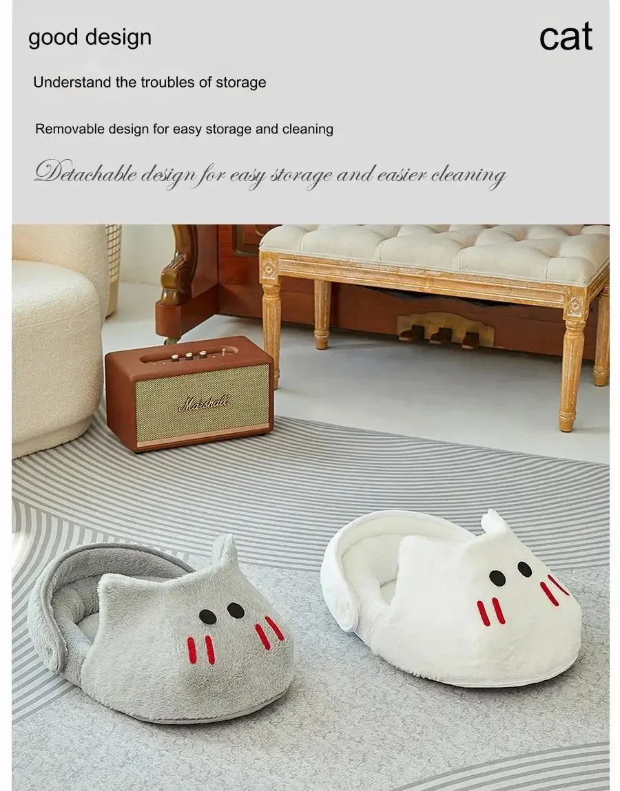 2 in 1 Plush Round Slipper Cat Bed Pet Mattress Warm Soft Comfortable Basket Sleeping Bag Nest For Cat and Dog Pet Accessories