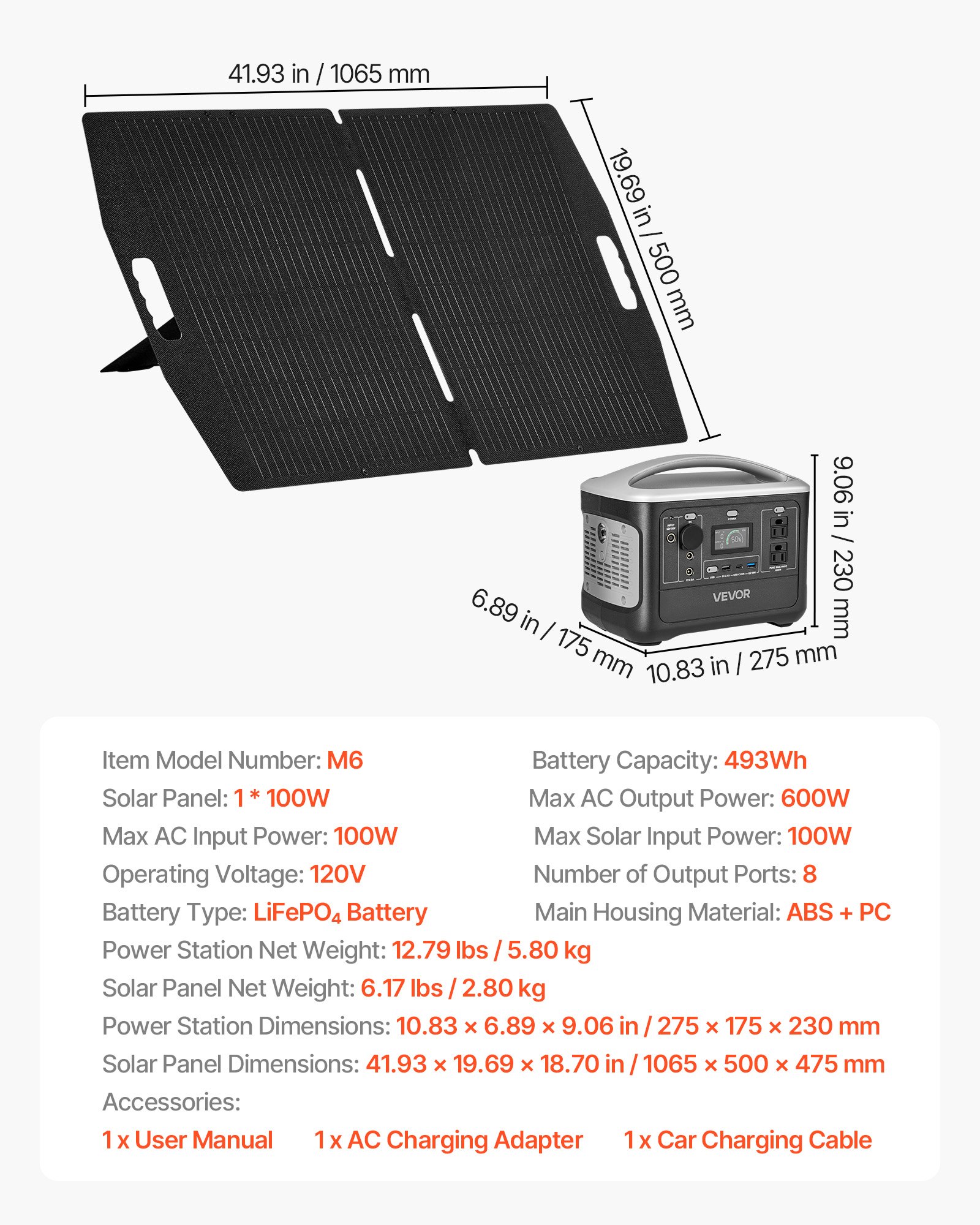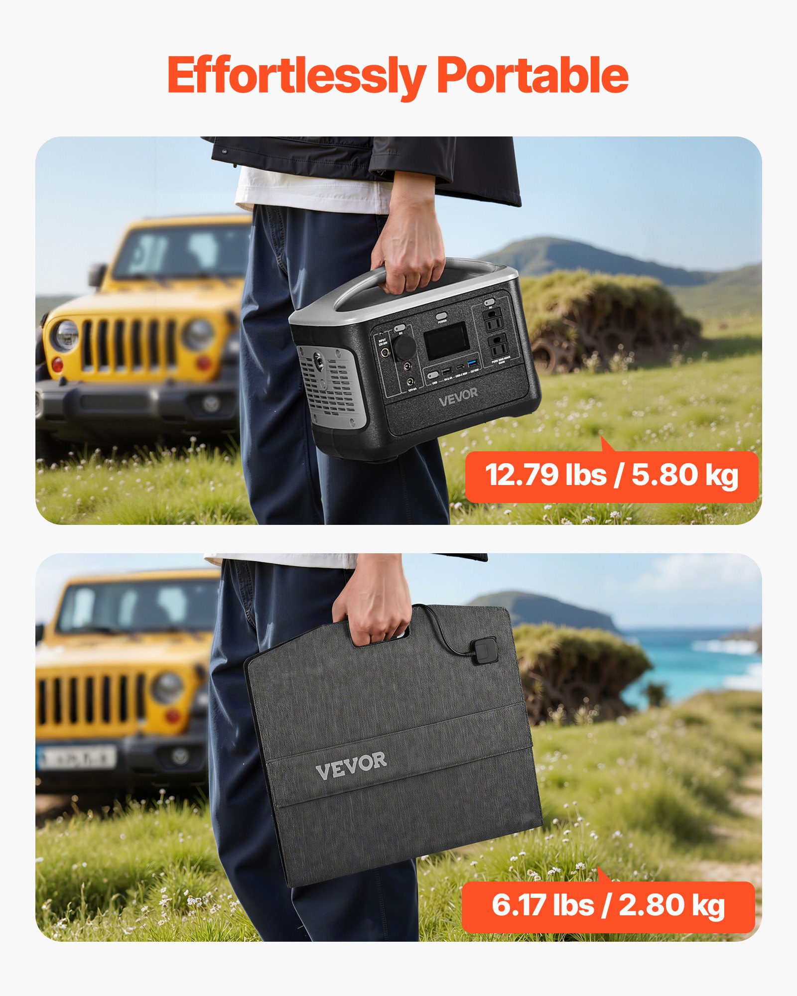 Multiple Charging Options: Includes a 100W solar panel that efficiently captures sunlight for clean power replenishment, fully charging the power station in about 10 hours. Also supports AC charging in about 7.5 hours, or car charging in about 9 hours