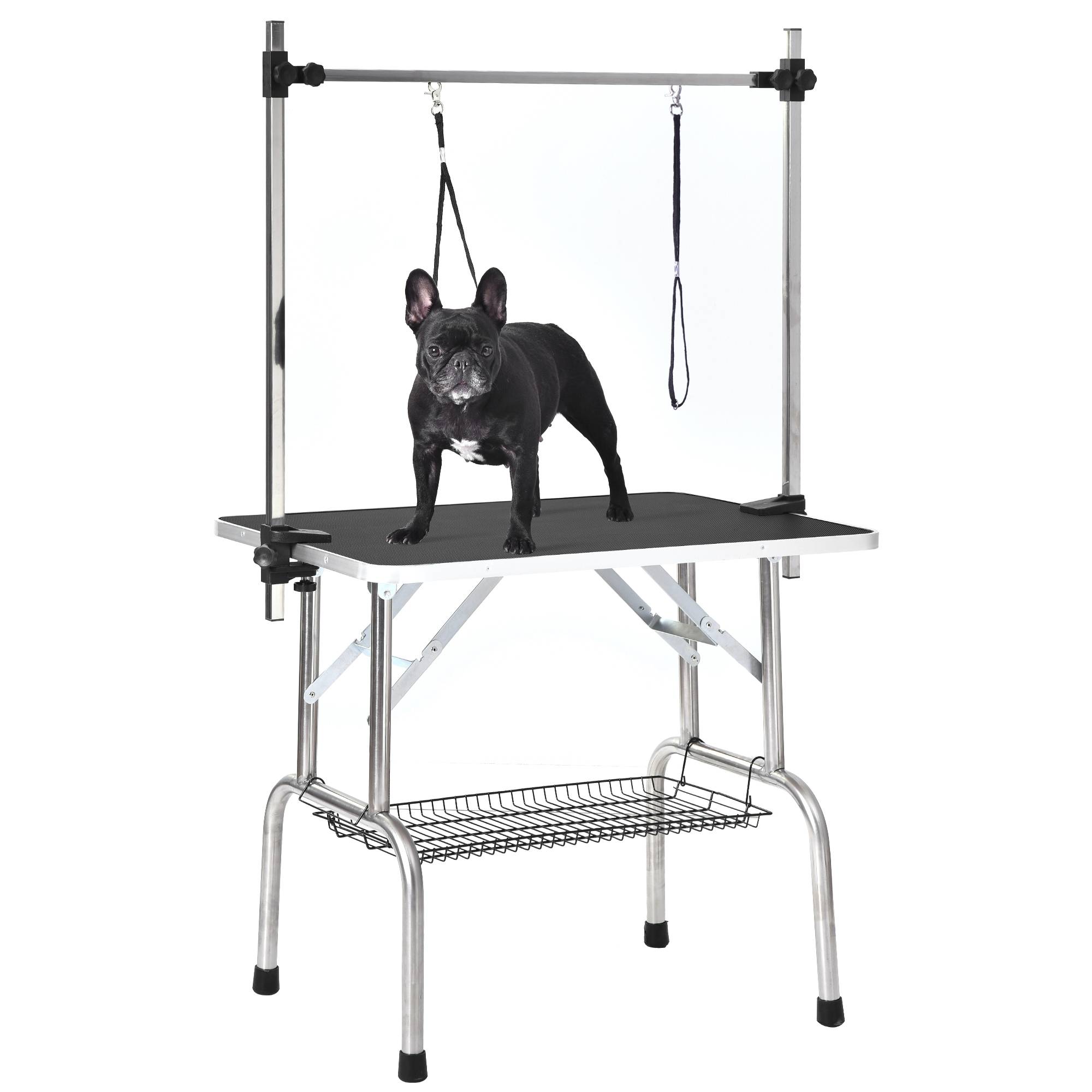 【Solid and Durable Grooming Table】The Pet Grooming Table is made of stainless steel frame, MDF board and PVC feet pad. Table Size: 36 x 23.8 x 29.3’’ (LxWxH).Max. Weight Capacity:250-300 Lb.