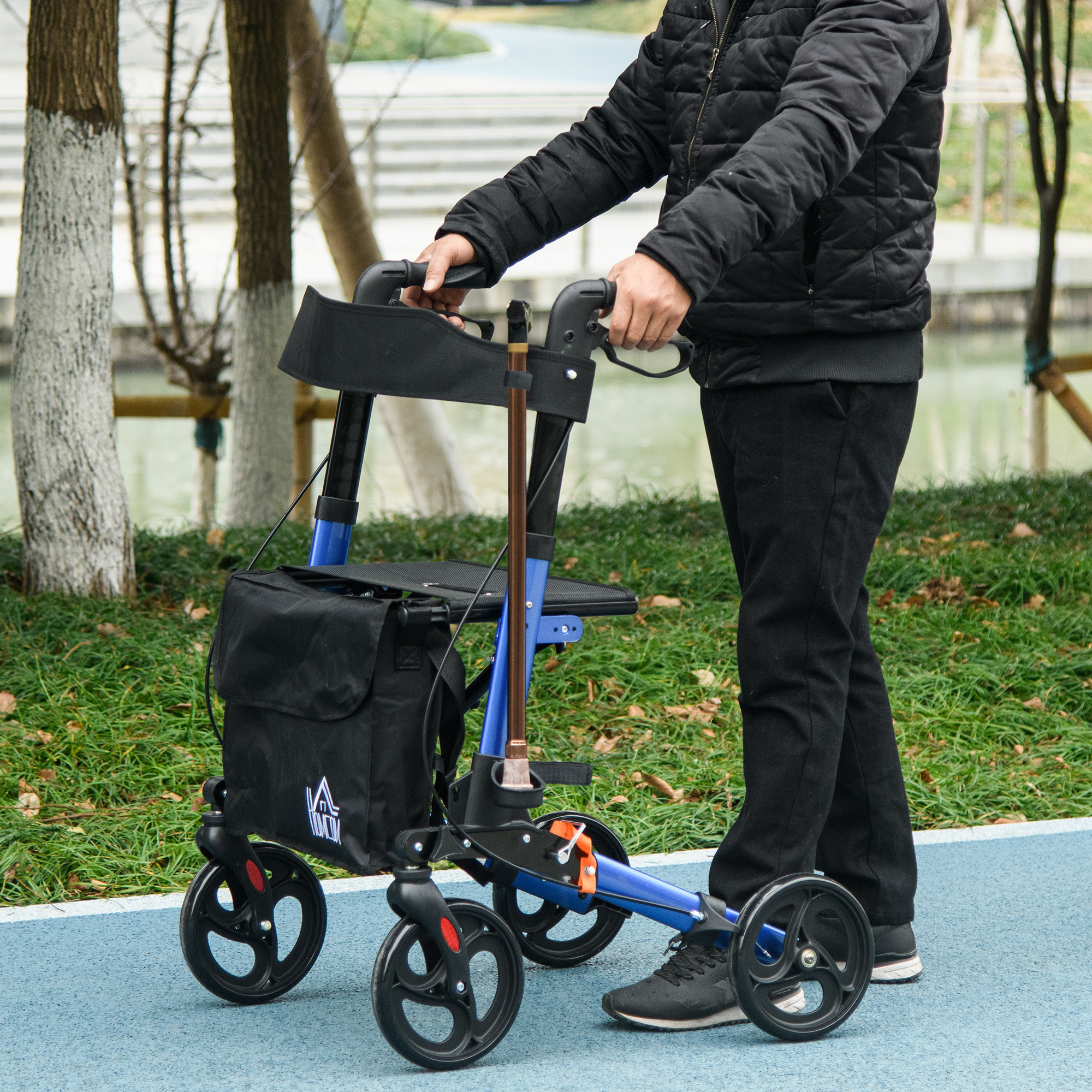 This lightweight rollator walker rolls with you, making journeys stress free. A powder coated aluminium frame for a strong, yet lightweight core, it is fitted with a seat so you can take a break whenever you want. It can be folded into a smaller size for convenient storage and transport. A storage bag to take small essentials with you on the journey. Four wheels for smooth movement, this mobility walker is complete with a dual brake for safety.