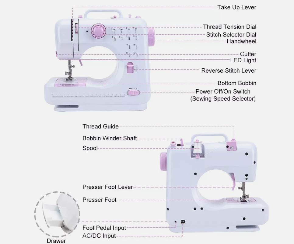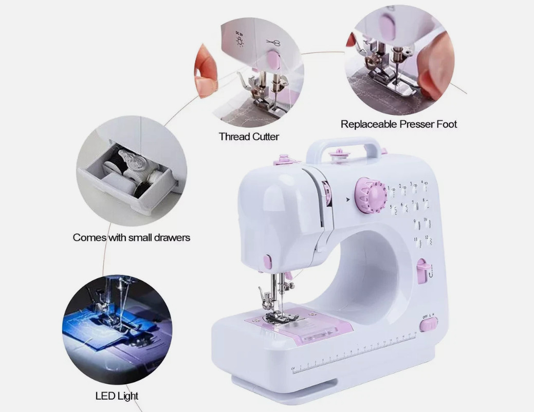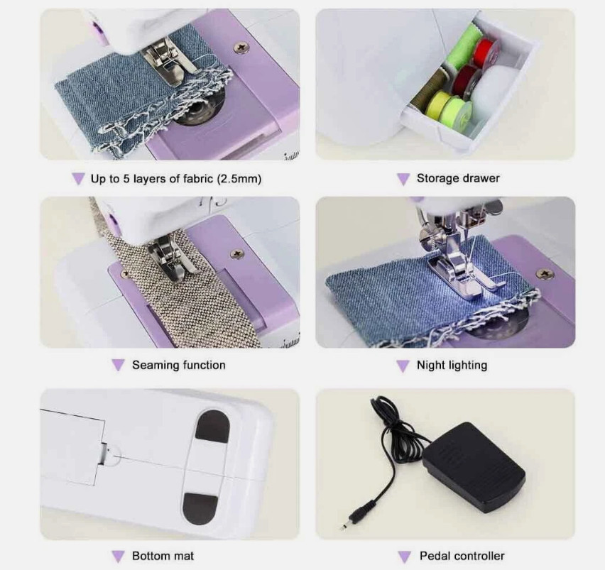 ãPortable and LightweightãThis electric sewing machine is designed with a mini size and single needle sewing to meet basic home sewing needs. It is easy to carry and suitable for sewing a variety of light and thin fabrics.