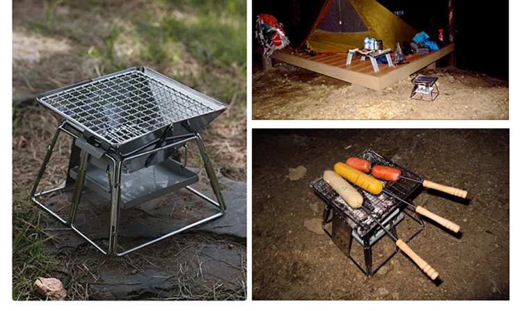 1. The camping barbecue grill is light and compact to carry with you, and the grilling net height can be adjusted in three positions: high, medium, and low. It is very suitable for burgers, fish, steaks, hot dogs, corn, etc.