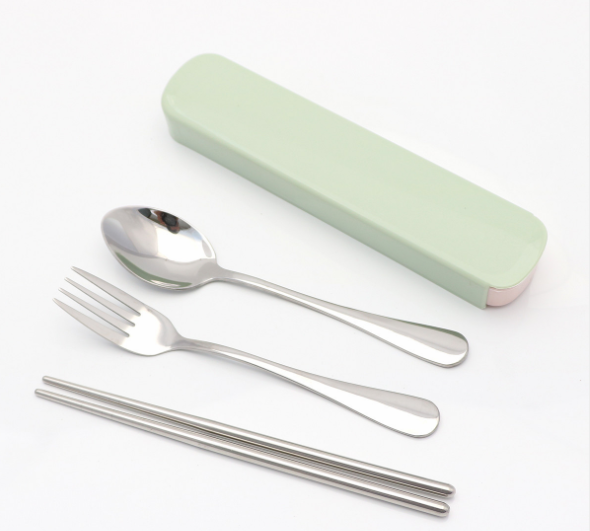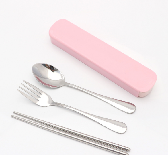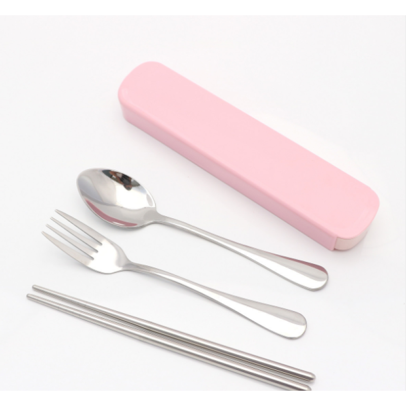 Portable stainless steel tableware tableware box three sets of chopsticks spoon suit Student Travel Gift Set