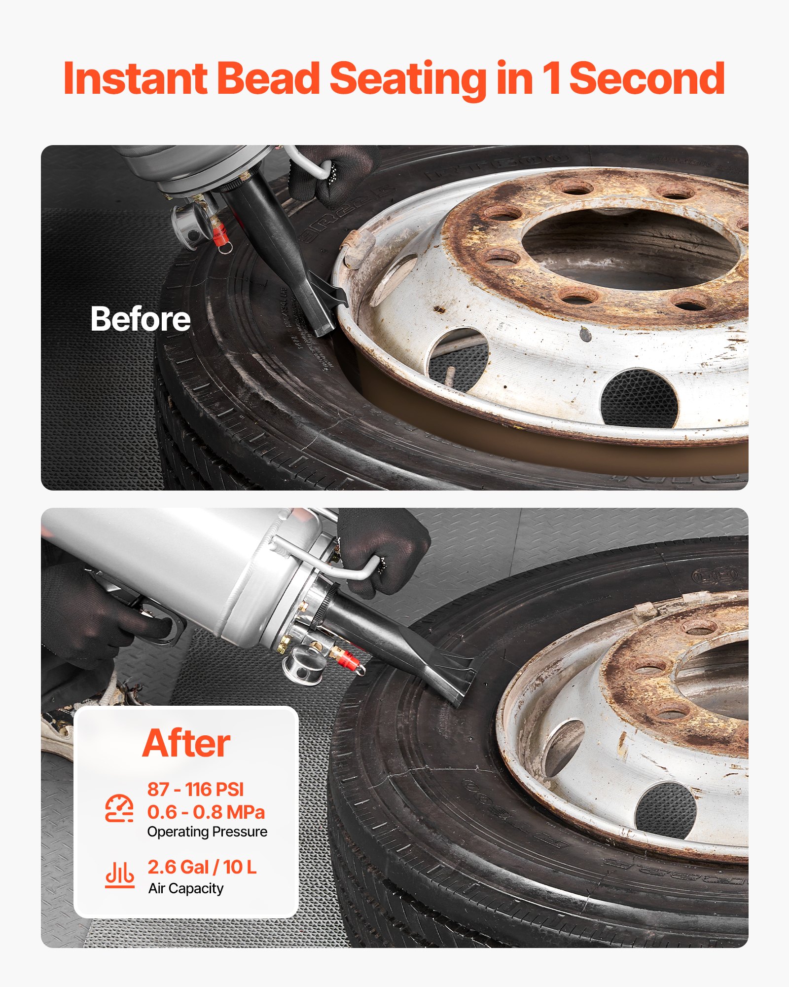 Portable Tire Bead Seater, 2.6 Gal/10 L Air Bead Blaster, Handheld Tire Inflator Tool, 87-116 PSI Operating Pressure, Trigger Seating Inflator For Car, Compact SUV, Light Truck, E-Bike, RV, ATV
